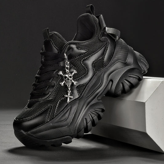 Women's 7cm Height-Increasing Fashion Casual Sneakers with Halloween Elements 3D Cross Skull Metal Shiny Pendant Chain Accessory, Dark Style Women's Outdoor All Seasons EVA Thick Platform High Waterline Lightweight Soft Botto
