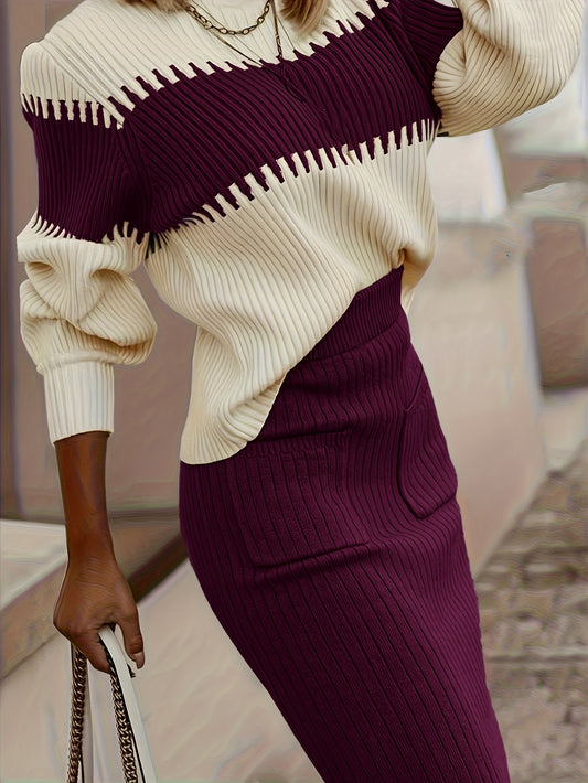 Women's 2pcs Viscose Sweatsuit Set - Oversized Sweater & H-Line Skirt