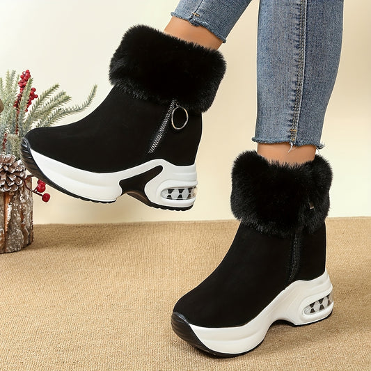 Women's Bowknot Decor Chunky Heel Boots - Plush Lined Fashion