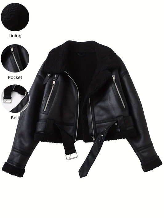 Women's Vintage Jacket - Belted Waist Zipper Cropped