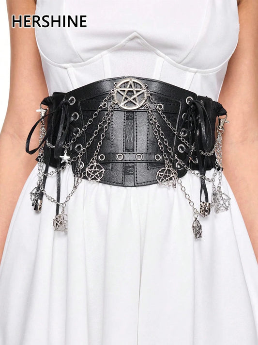 HERSHINE 1 piece women's Y2K black chain waist belt five-pointed star decoration Gothic style street style Halloween cosplay