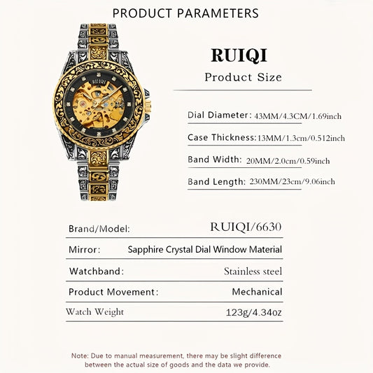 RUIQI Luxury Stainless Steel Automatic Watch - Vintage World Time