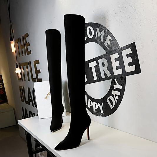 BIGTREE Women's Over-the-Knee High Heel Boots - Stiletto Black