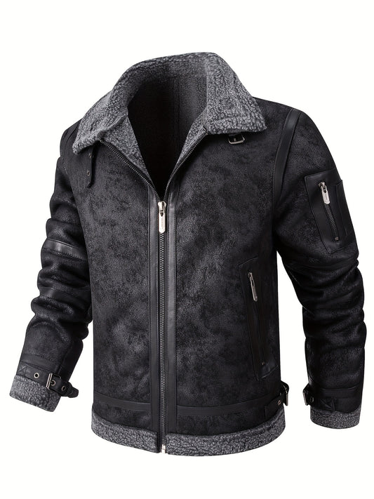 Men's Winter Thickened Bomber Jacket - Windproof Lapel PU