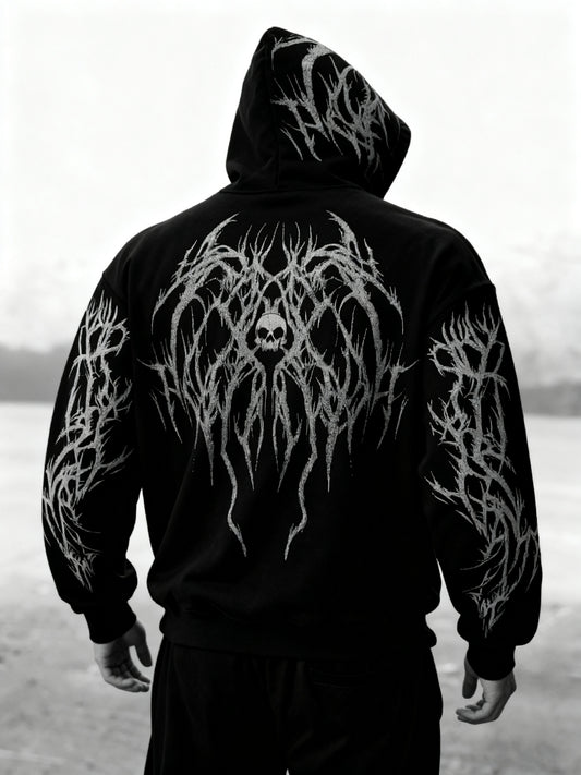 Men's Gothic Skull Print Zip Hoodie - Loose Fit with Pockets