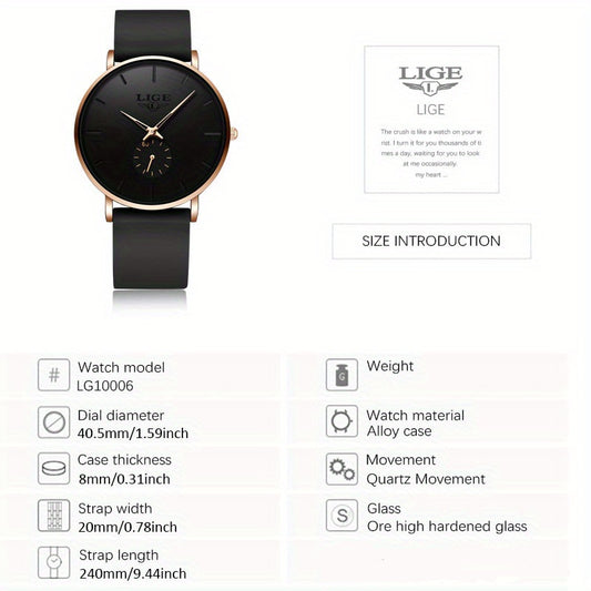 LIGE Minimalist Watch - Ultra-Thin Silicone Strap Unisex