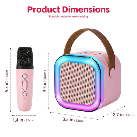 Smarter Lautsprecher, tragbarer Lautsprecher, USB-C-Ladeanschluss, 1 Karaoke-Maschine & 2 kabellose Mikrofone, RGB-Farblichteffekte, verschiedene Stimmverzerrungseffekte, geeignet für Familienfeiern, Geburtstagsfeiern und Karaoke zu Hause
