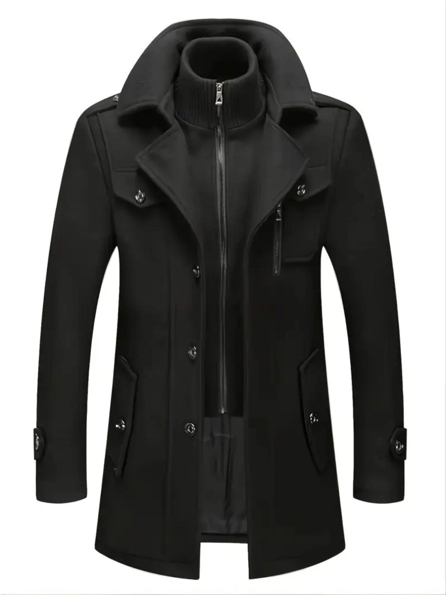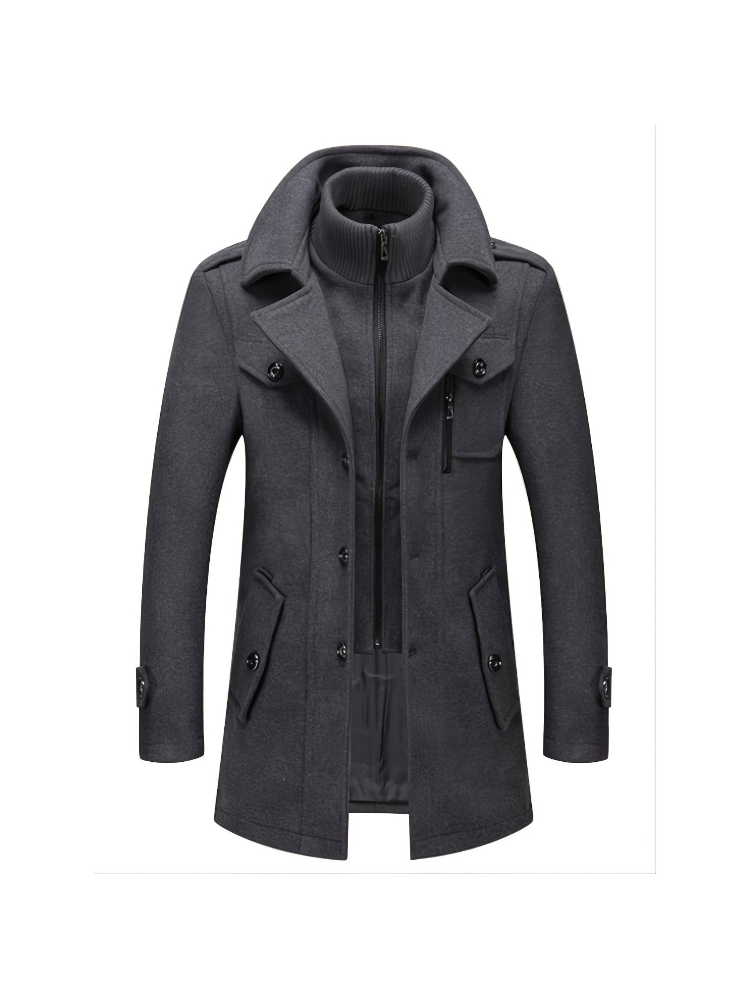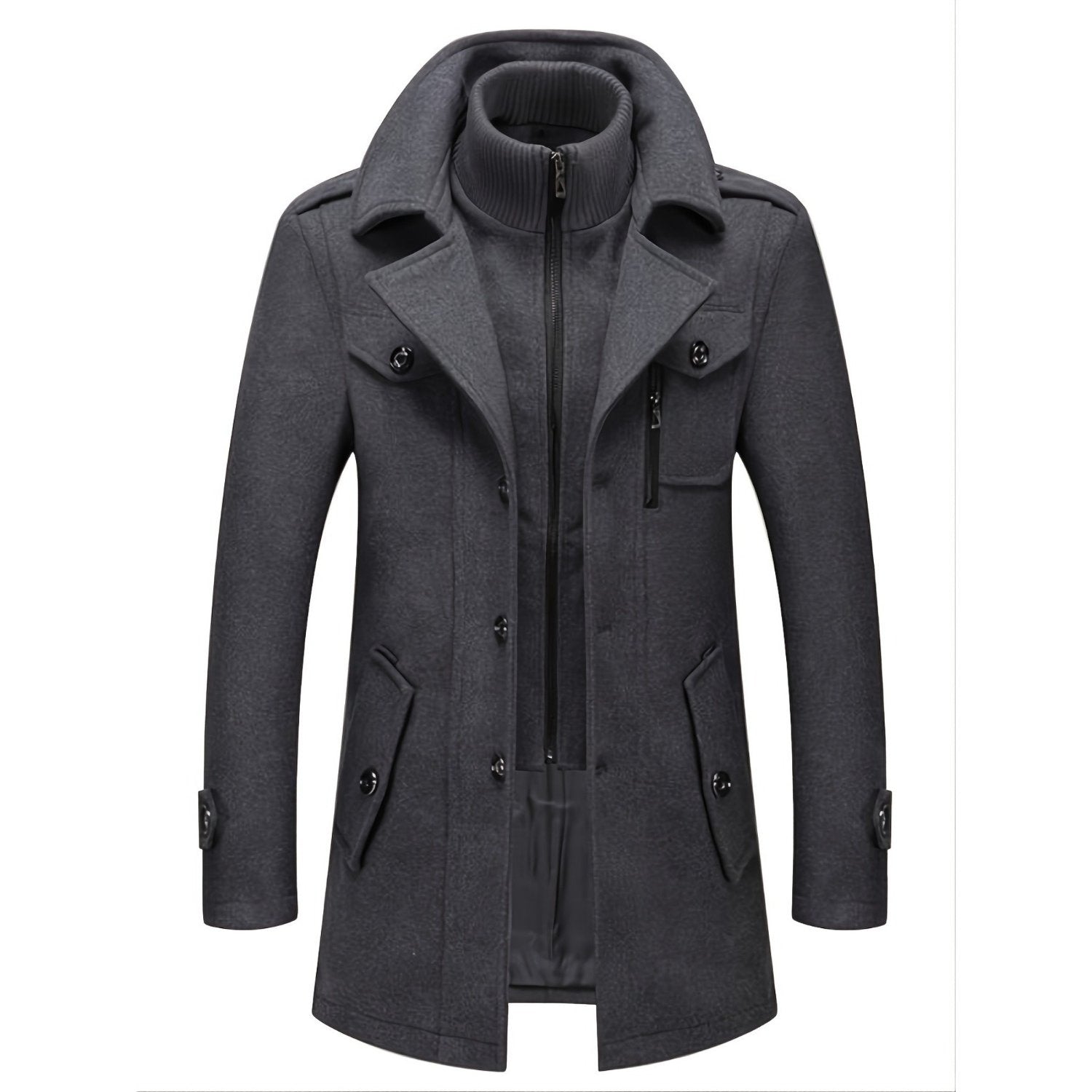 Men's Business Wool Coat - Double Collar Mid-Length
