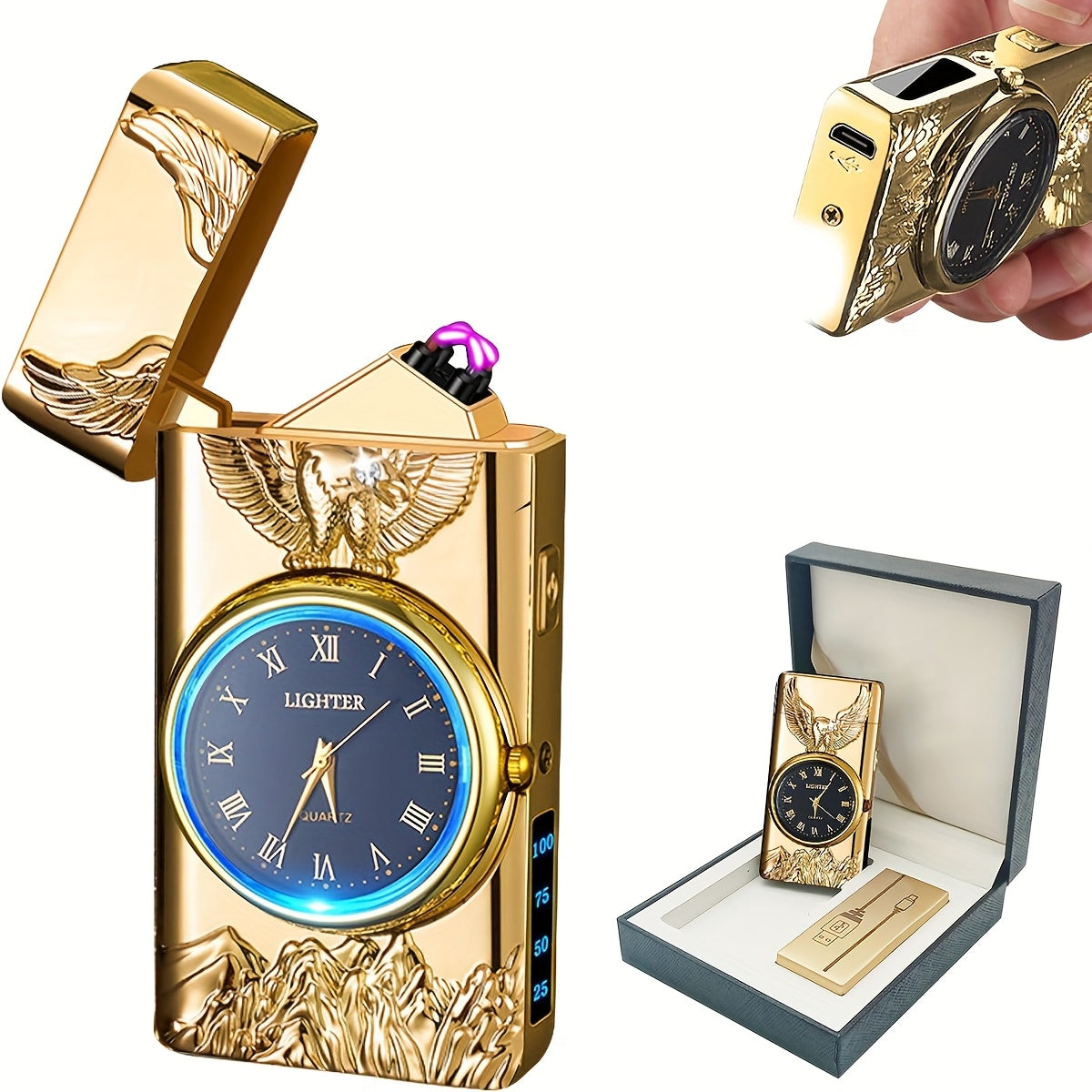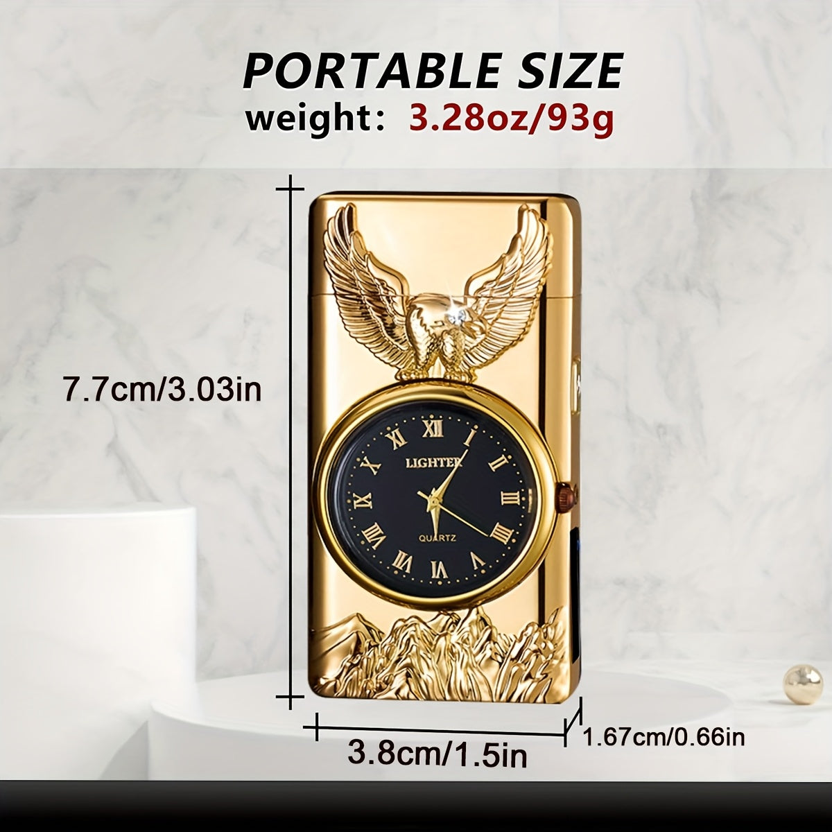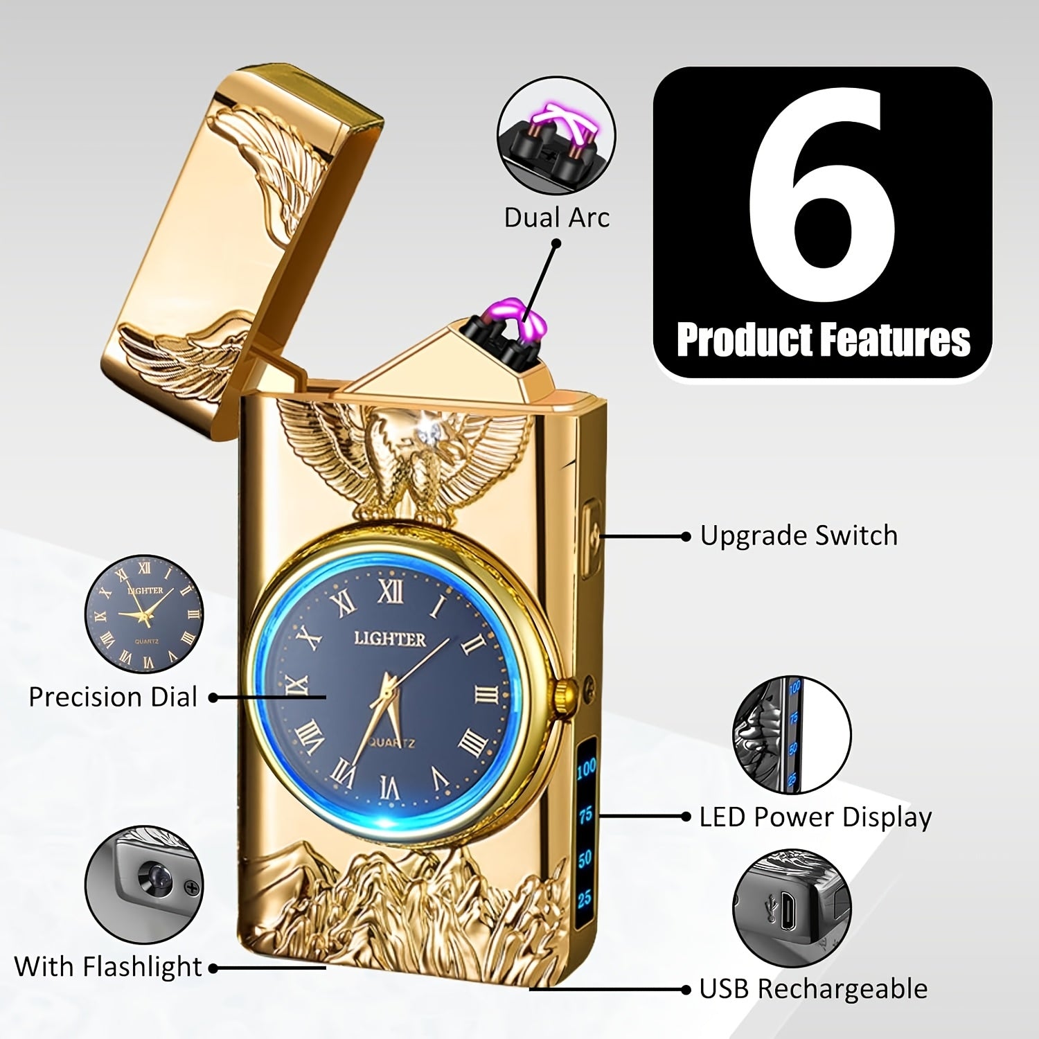 Premium ignition tool with Dual Arc Plasma Igniter! 🔥 Featuring 3D eagle relief design, LED illuminated dials, USB charging, 220mAh battery, zinc alloy construction, electronic lighter technology, and perfect for collectors and emergency fire generation outdoor use.