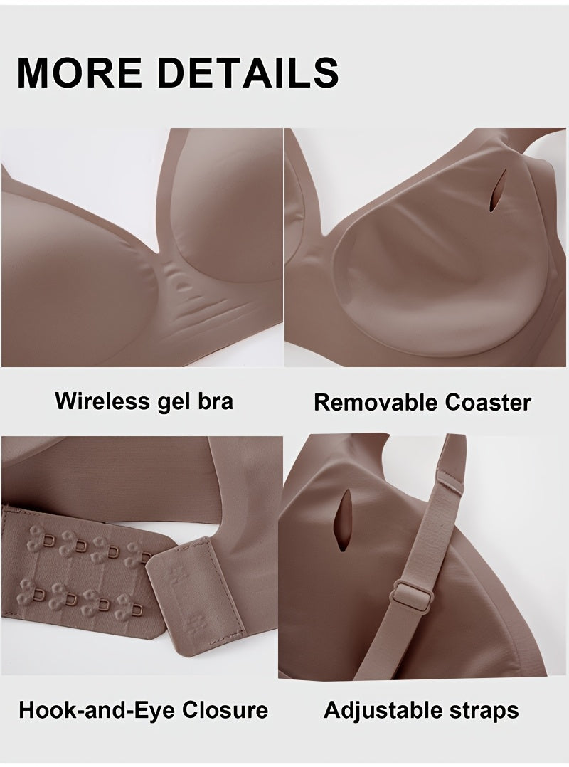 Comfortable support with Full-Coverage Push-Up Bra! 👙 Featuring high wire-free lift, non-detachable padding, soft T-shirt compatible strap, one-piece design, 55% polyamide 45% elastane, and perfect for casual and formal elegant lingerie with high support and hand washable care.