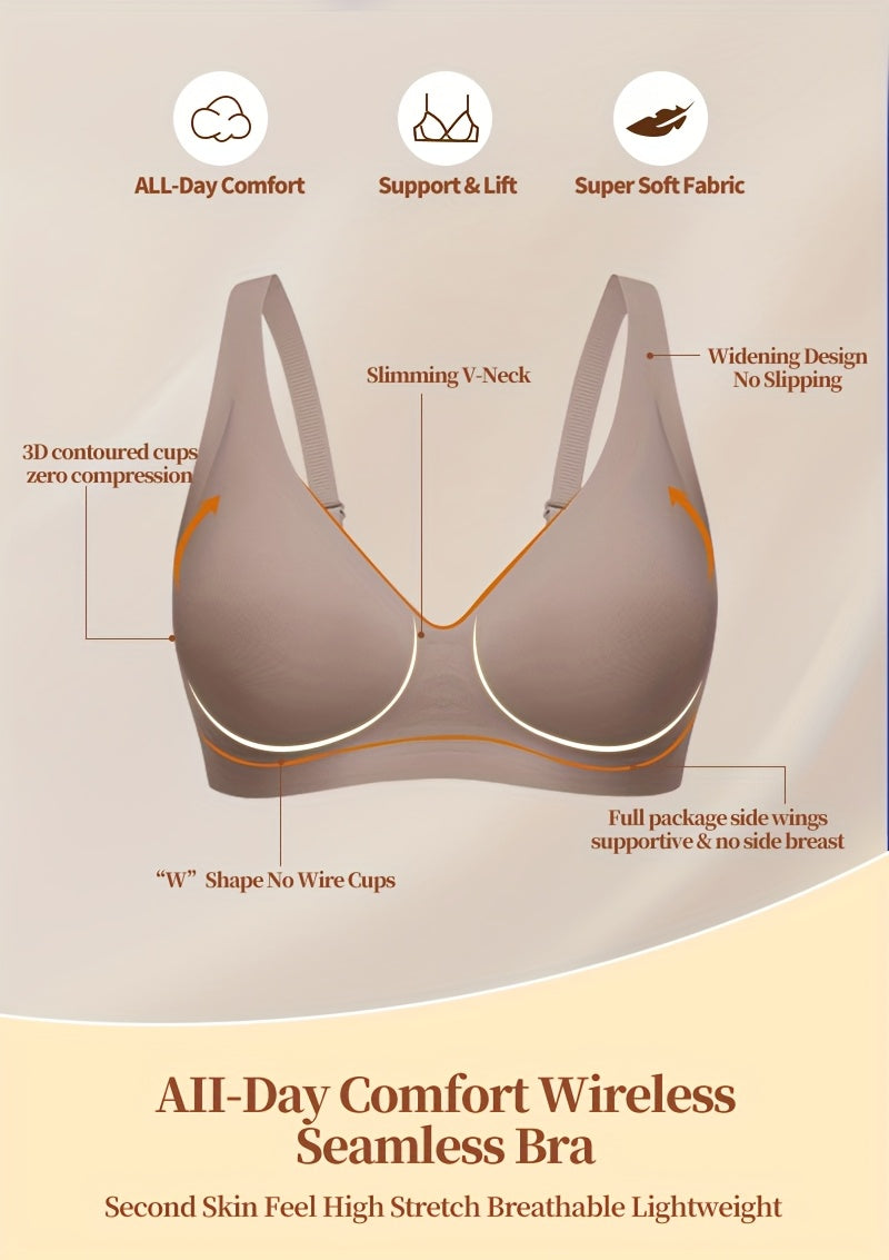 Full-Coverage Push-Up Bra - Wire-Free High Lift Non-Detachable Pad
