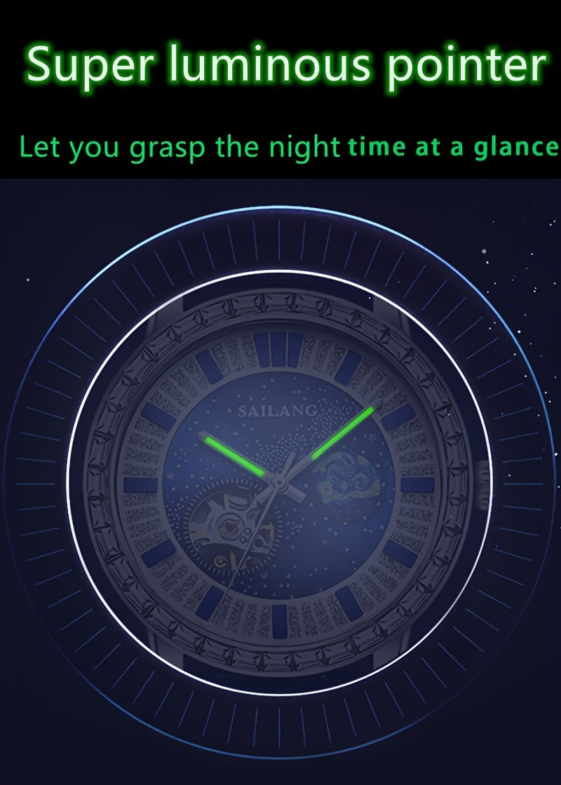 Men's Automatic Mechanical Watch - Casual Hollow Rhinestone Detail