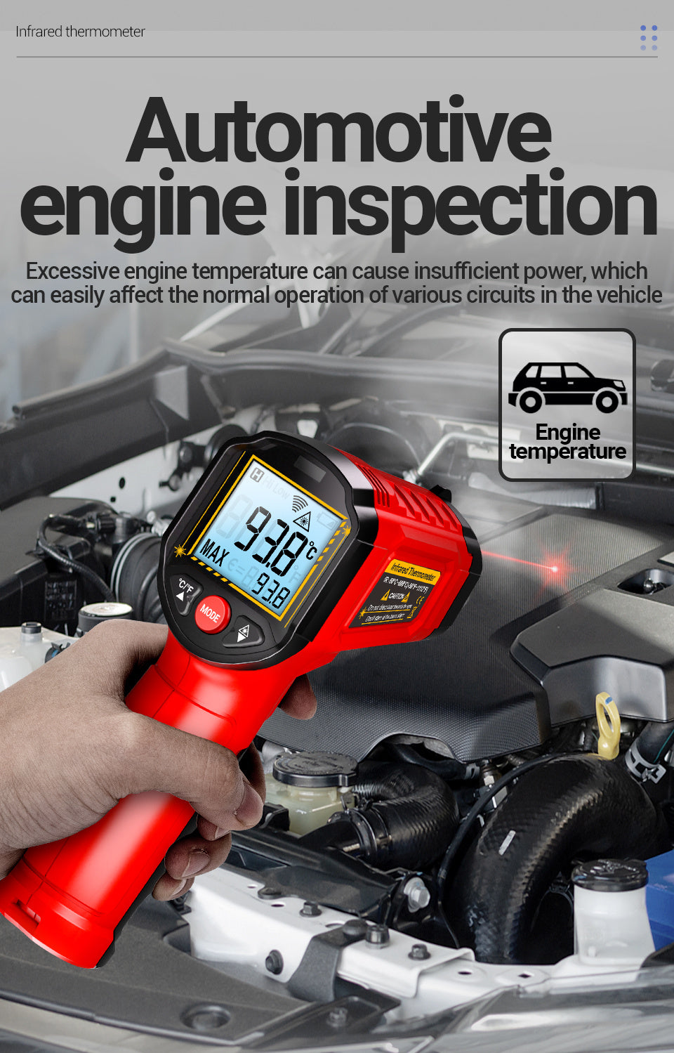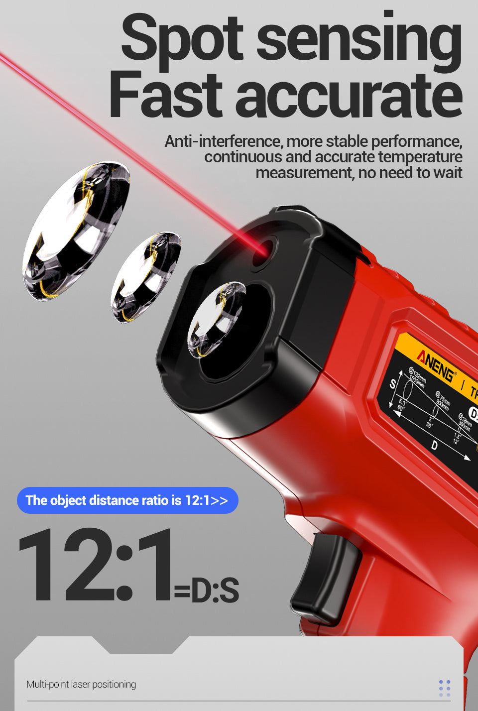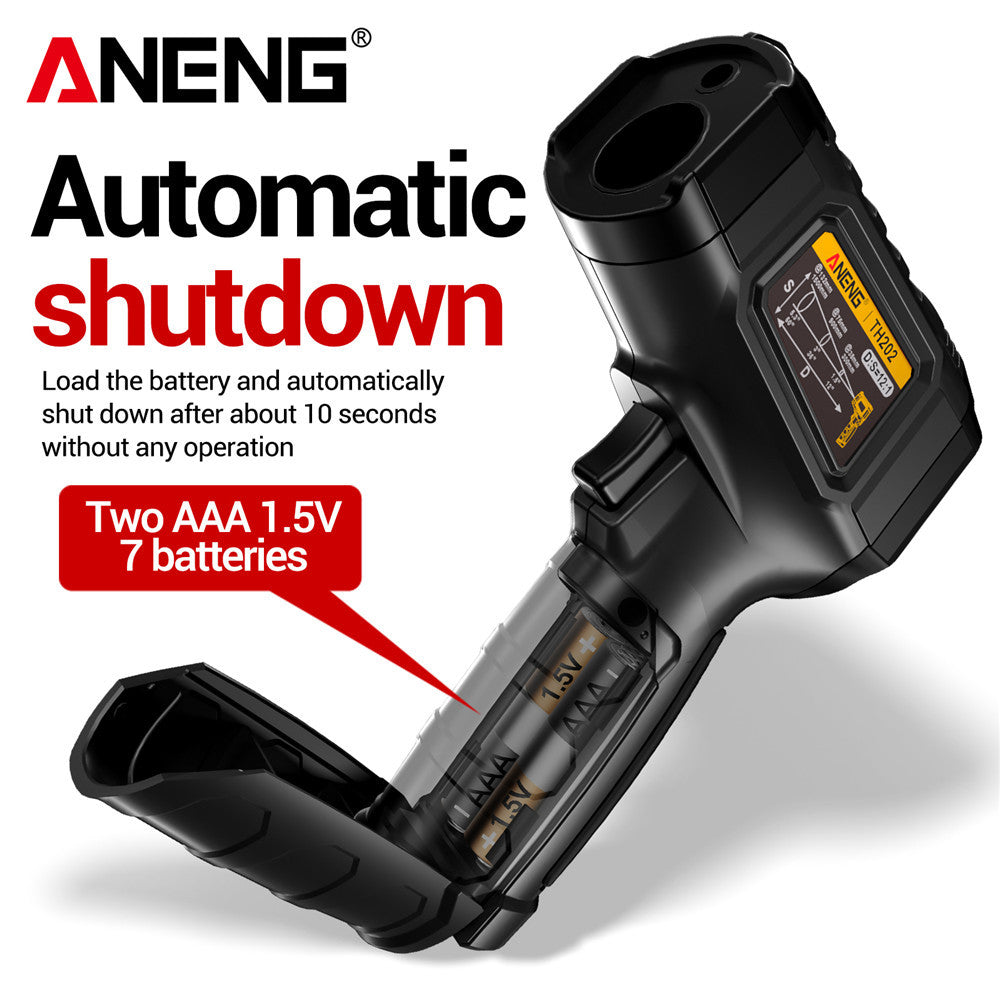 Precision temperature measurement with ANENG TH202 Thermometer Hygrometer! 🌡️ Featuring non-contact sensing, -50-600°C temperature range, temperature gun design, LCD backlit display screen, pyrometer tester, ABS resin material, 0.1 measurement accuracy, and battery powered operation without battery included.