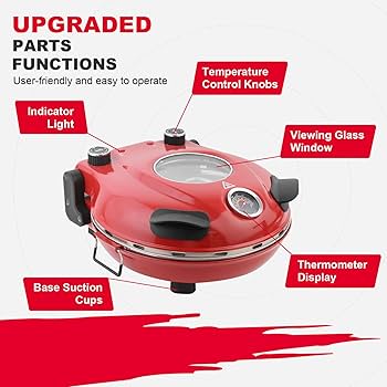 ⚙️ 5 niveaux de température réglables : Flexibilité pour faire des pizzas à croûte mince, des croûtes épaisses, des pains plats, des toasts ou même réchauffer des aliments — vous contrôlez la cuisson parfaite.