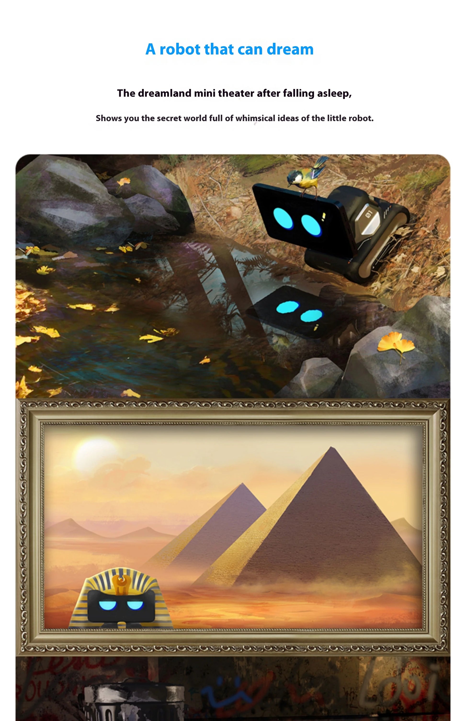 C'est un compagnon intelligent doté d'intelligence artificielle qui parle, réagit, apprend et apporte de la joie chaque jour.