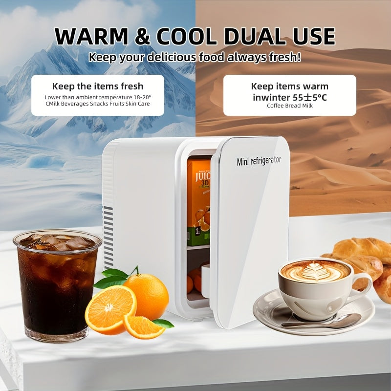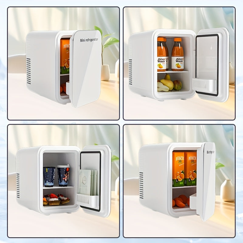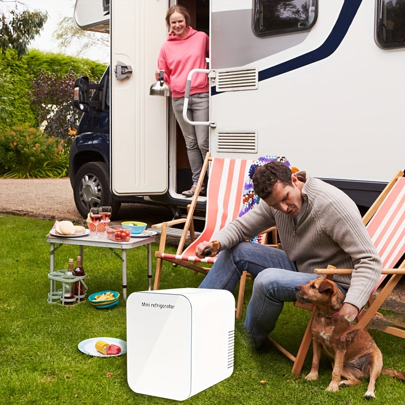 Gardez vos aliments au frais ou au chaud avec le mini-frigo RV 4L ! ❄️🔥 Doté d'une capacité de 4 litres (6 canettes), d'une double alimentation AC+12V DC, d'un design portable et d'une technologie de refroidissement/chauffage à semi-conducteurs, ce mini-frigo blanc est parfait pour les chambres, la maison, la voiture, les voyages, les soins de la peau, les cosmétiques, les fruits et les boissons.