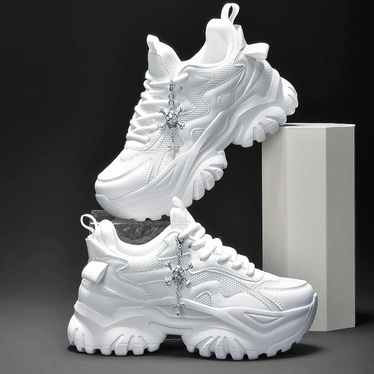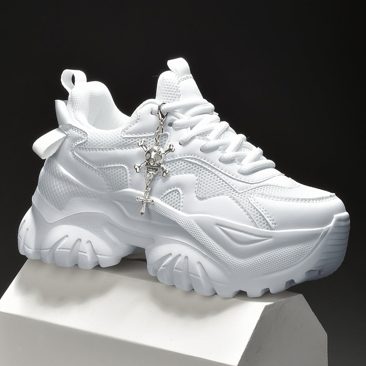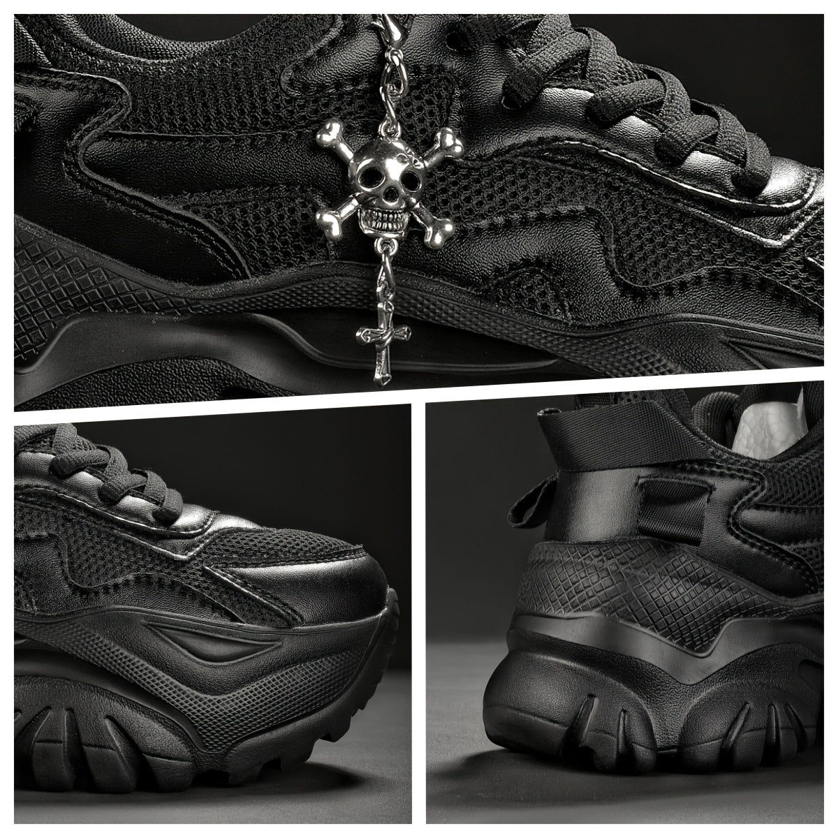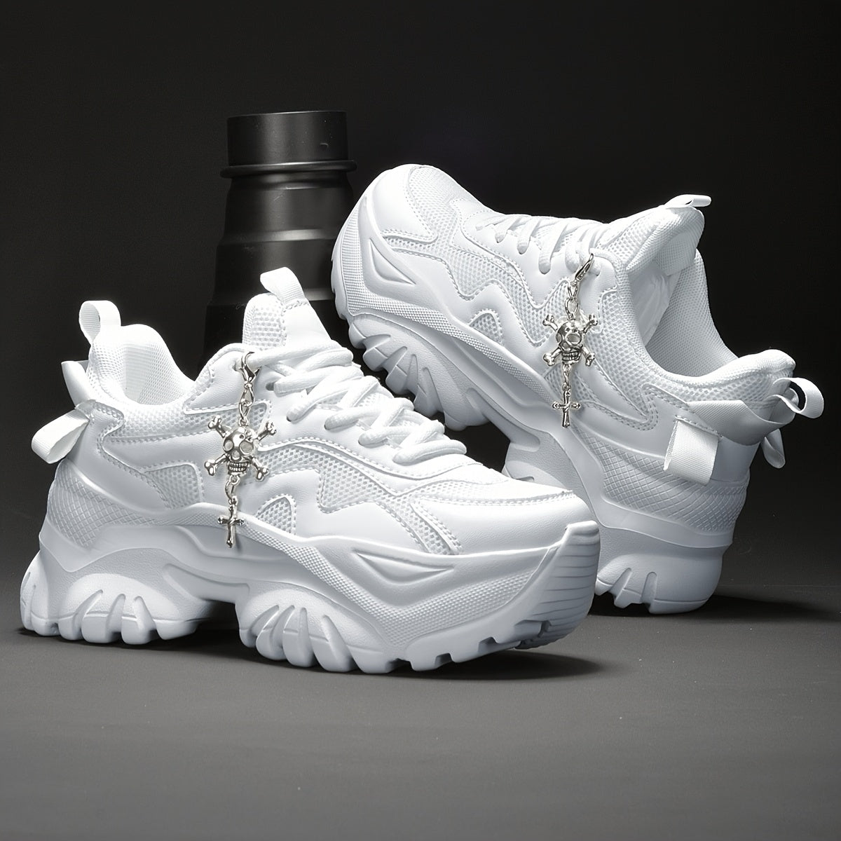 Women's 7cm Height-Increasing Fashion Casual Sneakers with Halloween Elements 3D Cross Skull Metal Shiny Pendant Chain Accessory, Dark Style Women's Outdoor All Seasons EVA Thick Platform High Waterline Lightweight Soft Botto