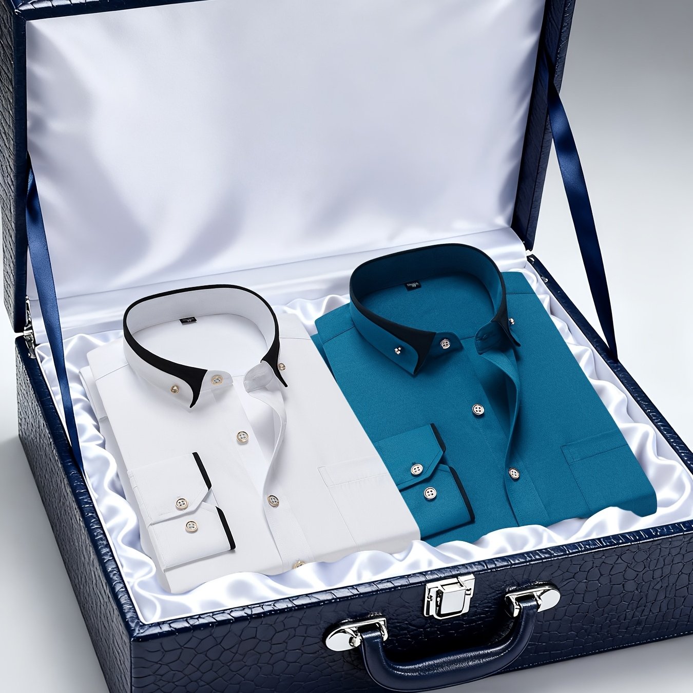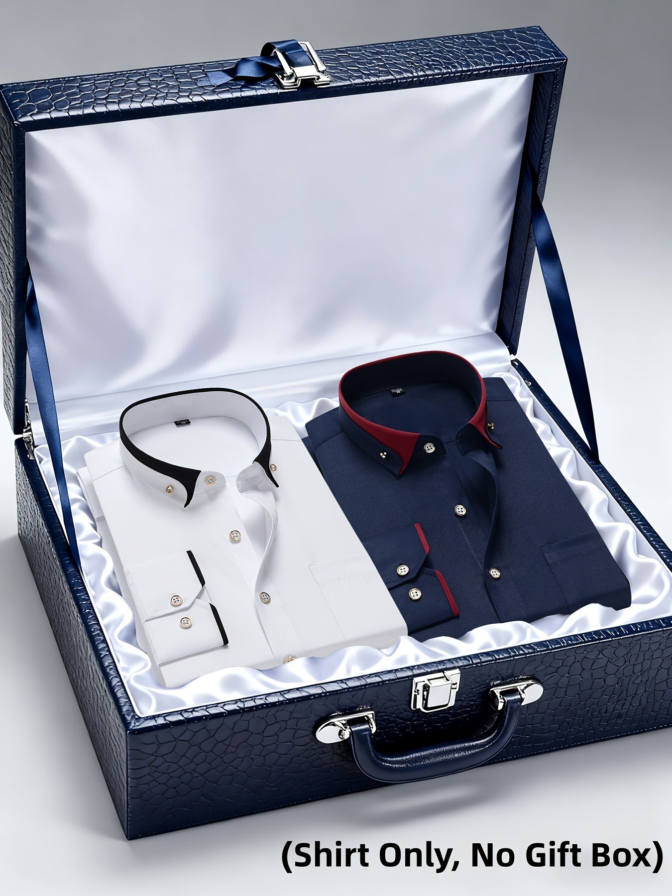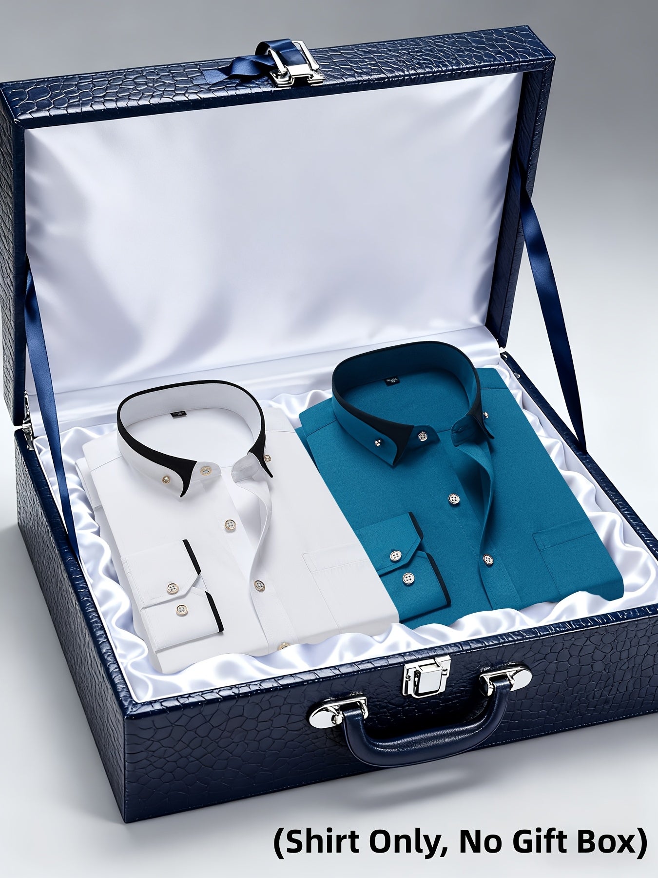 Men's Casual Business Shirt 1+1pc - Lapel Chest Pocket