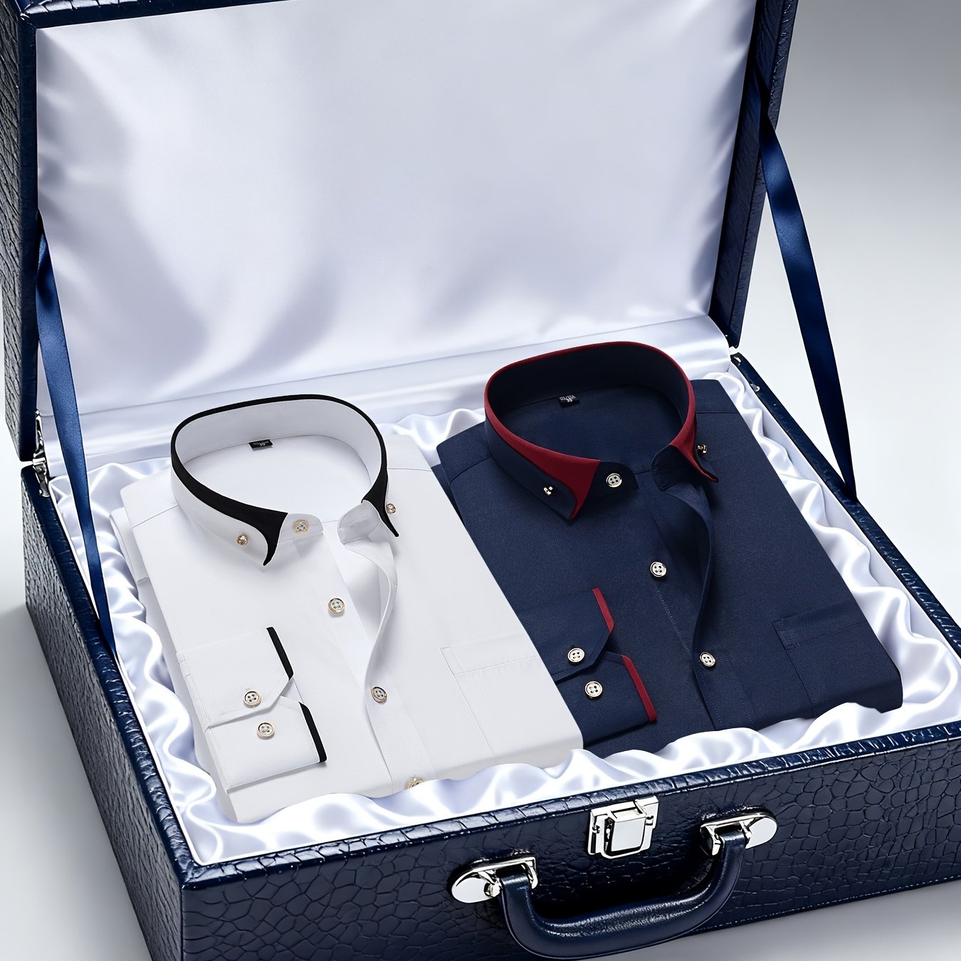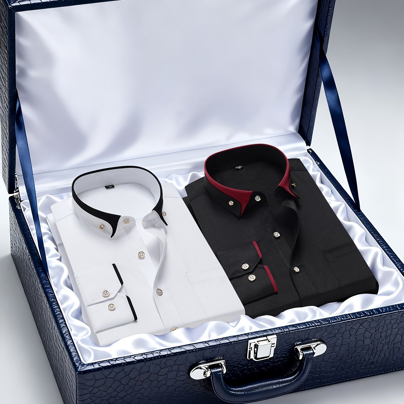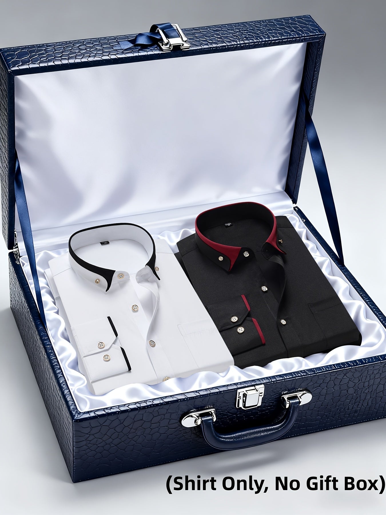 Men's Casual Business Shirt 1+1pc - Lapel Chest Pocket