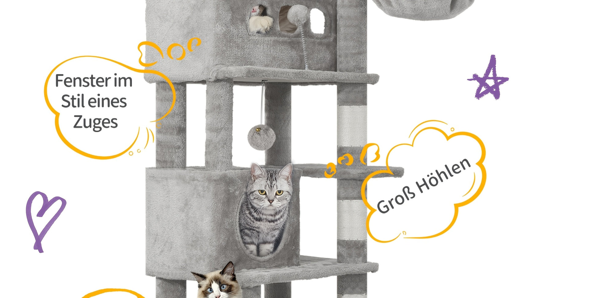 Ultimate cat paradise with HZUANERI 170cm Large Cat Tree! 🐱 Featuring multi-storey design for Maine cats, large perch, 8 scratching posts, 2 caves, washable mat, wooden construction, and available in light grey and dark grey for feline enrichment and multi-level play.