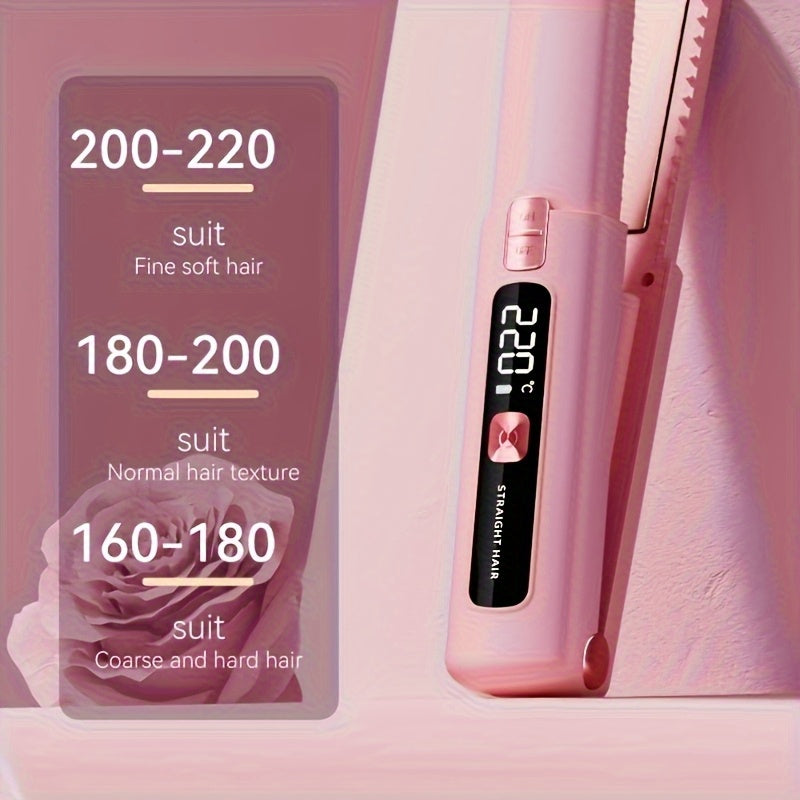 Portable hair styling with Mini 2-in-1 Wireless Hair Straightener & Curler! 💇 Featuring USB rechargeable 4500mAh battery, anti-scald constant temp control, ionic care technology, LCD display, portable travel design, flat iron and curling wand combo, and perfect for dry hair styling.