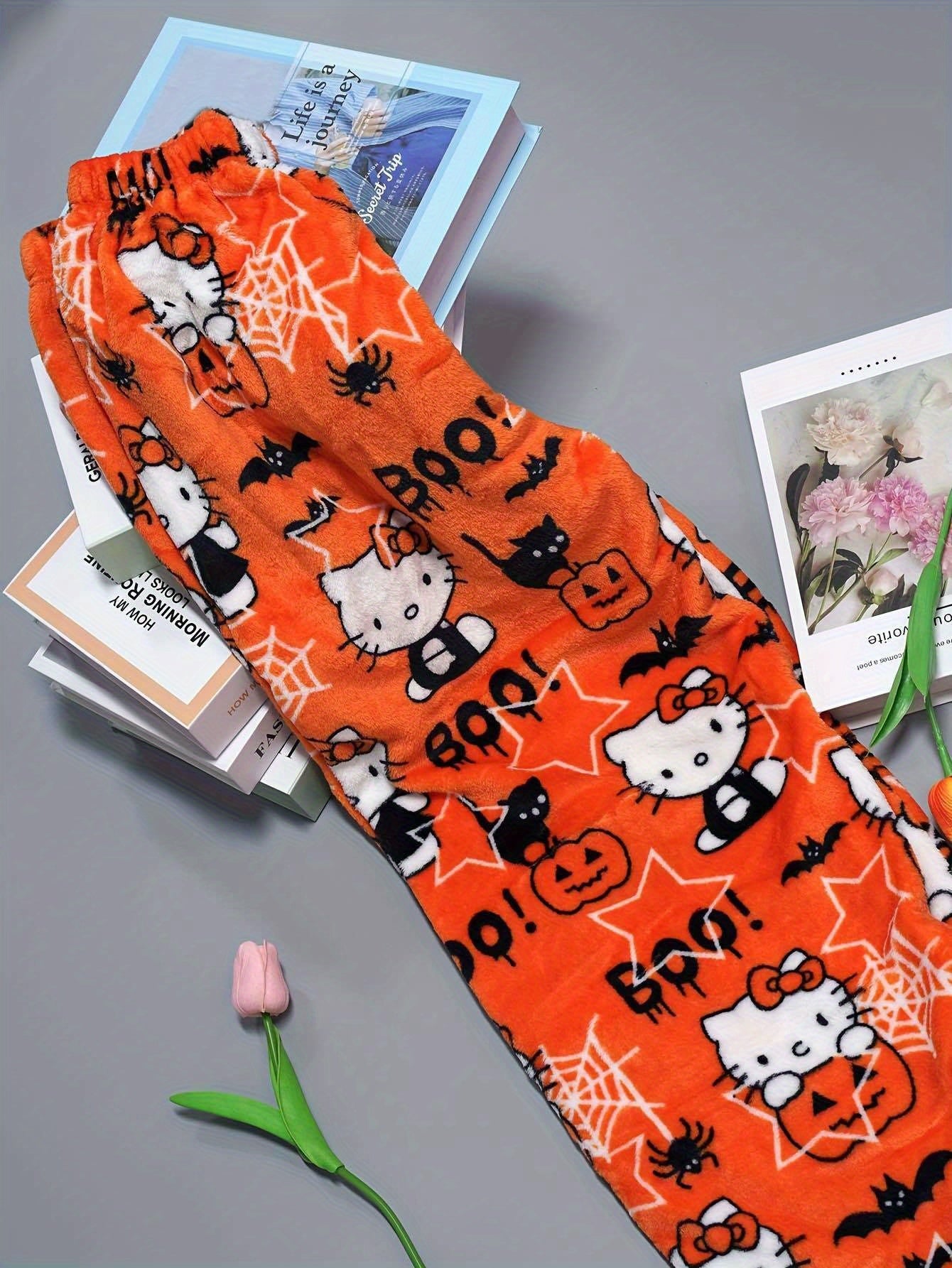 Cozy comfort with SANRIO Hello Kitty Women's Flannel Sleep Pants! 😺 Featuring thick warm winter design, cute cartoon cat print, long lounge pants, 100% polyester flannel material, patterned details, and perfect for home and casual wear with playful soft texture.