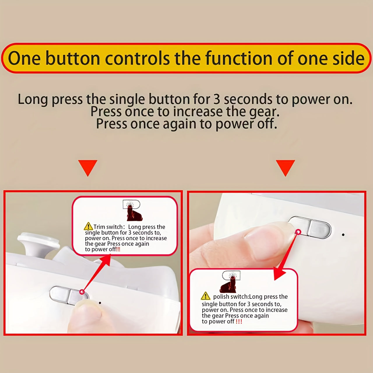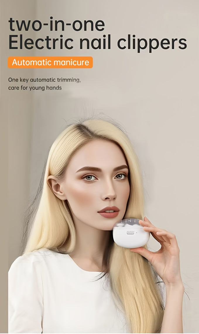 Perfect manicure with 2-in-1 Electric Nail Clipper & Polisher! 💅 Featuring LED light, anti-pinch safety feature, polishing and grinding functions, USB charging, and multi-functional design for home and salon use.