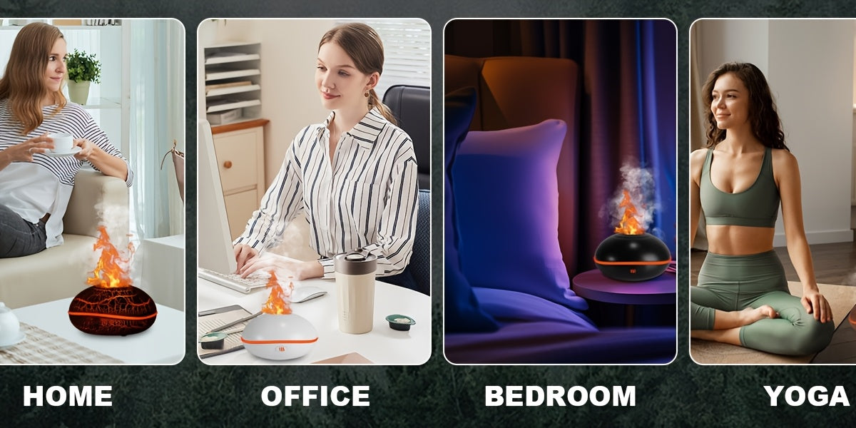 Atmospheric wellness with BABIQT USB Soundwave Humidifier & Aroma Diffuser! 💧 Featuring realistic flame effect, 7-color night light, quiet operation, top-fill tank (<1L), soundwave technology, push button control, atomization mode, and perfect for office, bedroom, yoga studio as compact air mist maker.