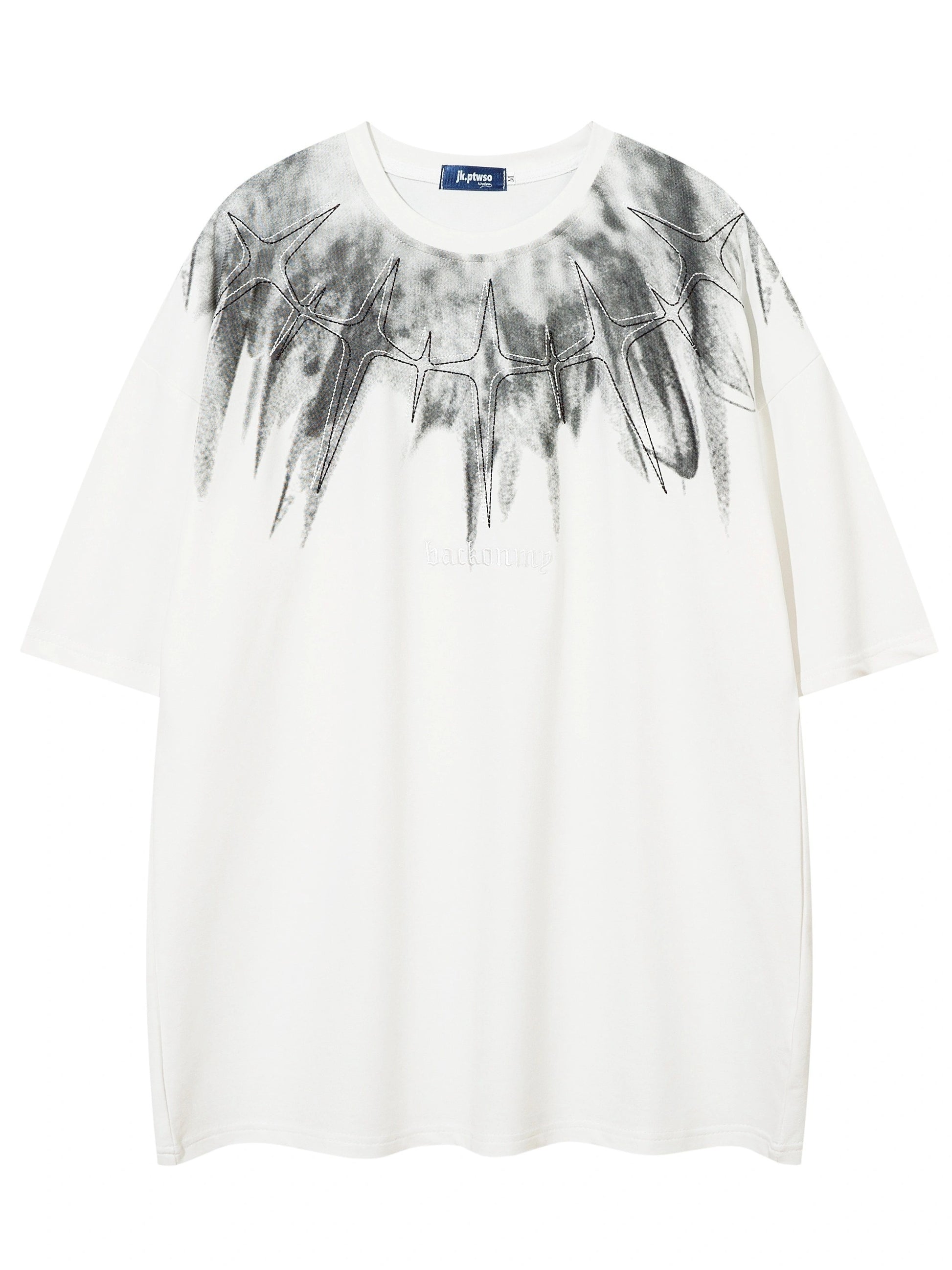 Relaxed T-Shirt - Geometric Print Cotton Blend