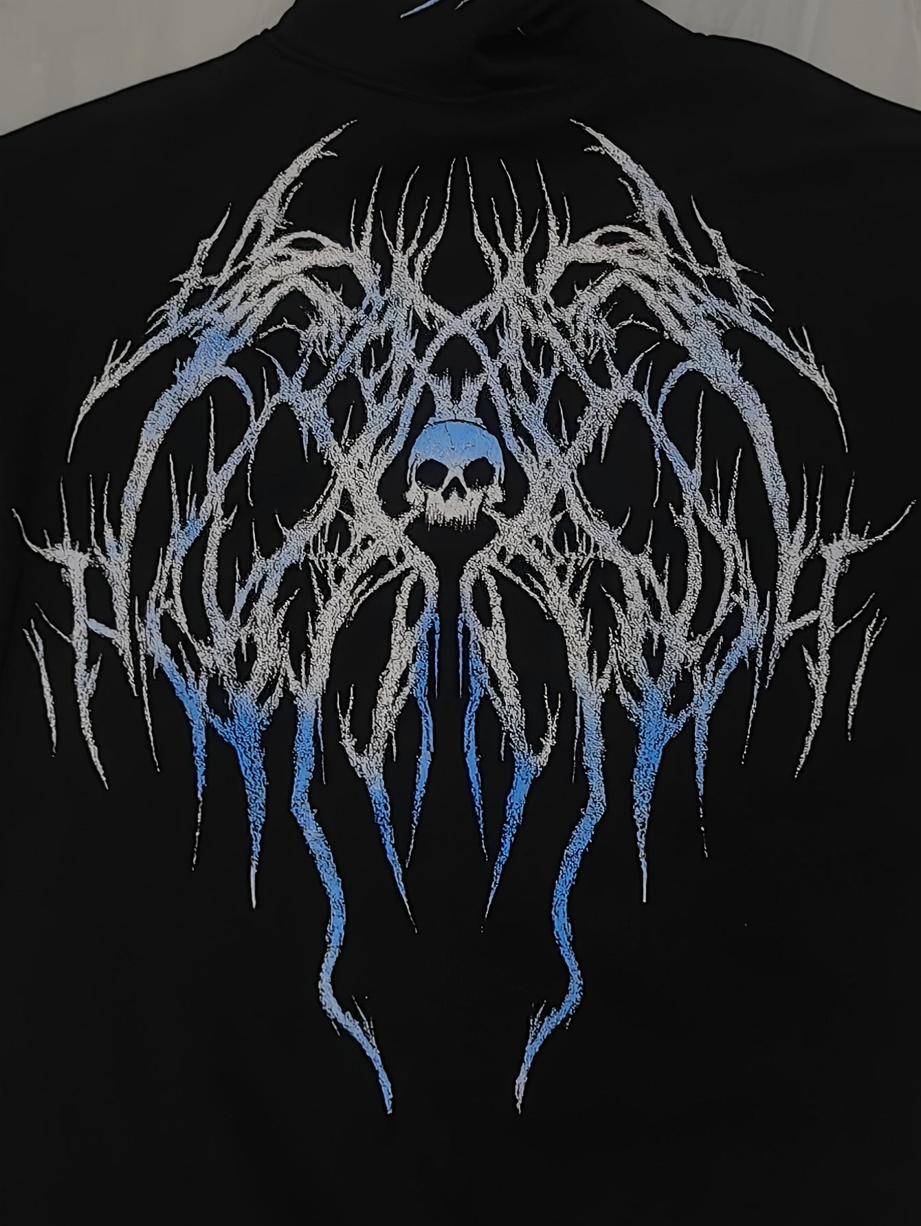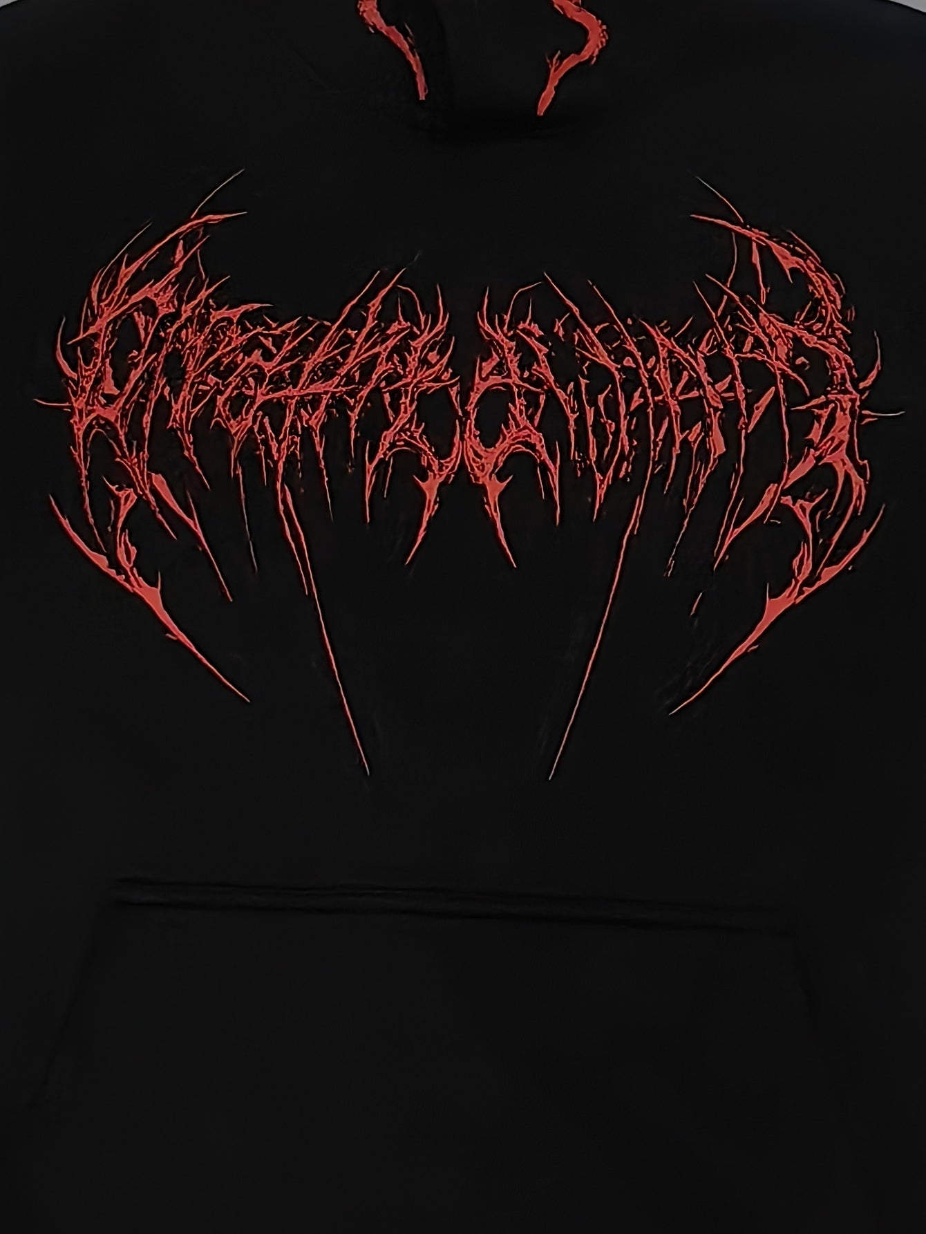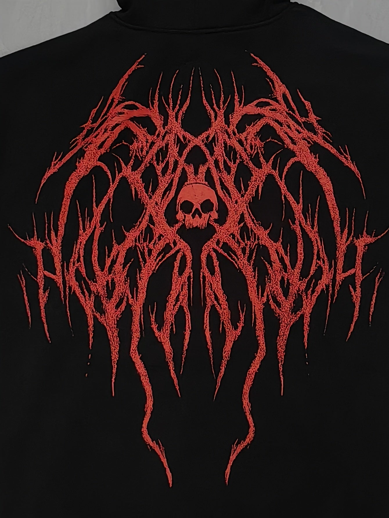 Unleash your dark side with this Men's Gothic Skull Print Zip Hoodie! 💀 Featuring bold gothic lettering and skull prints on a black background, this full-zip hoodie is perfect for winter fitness, street casual wear, and making a statement.