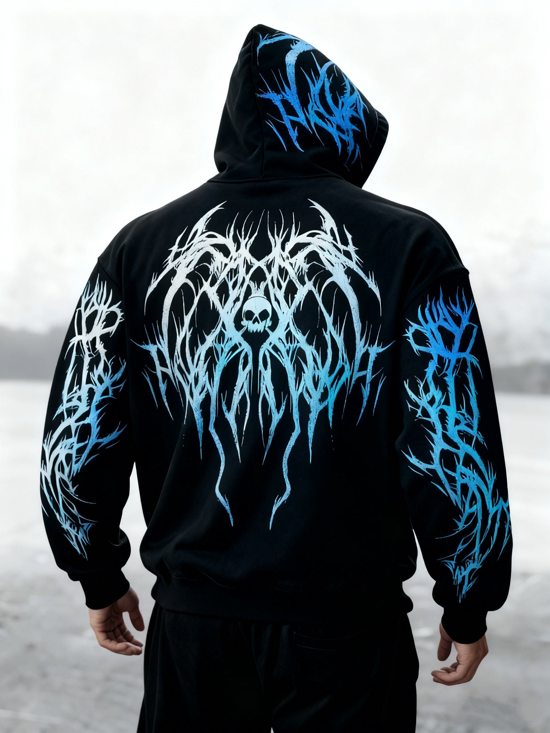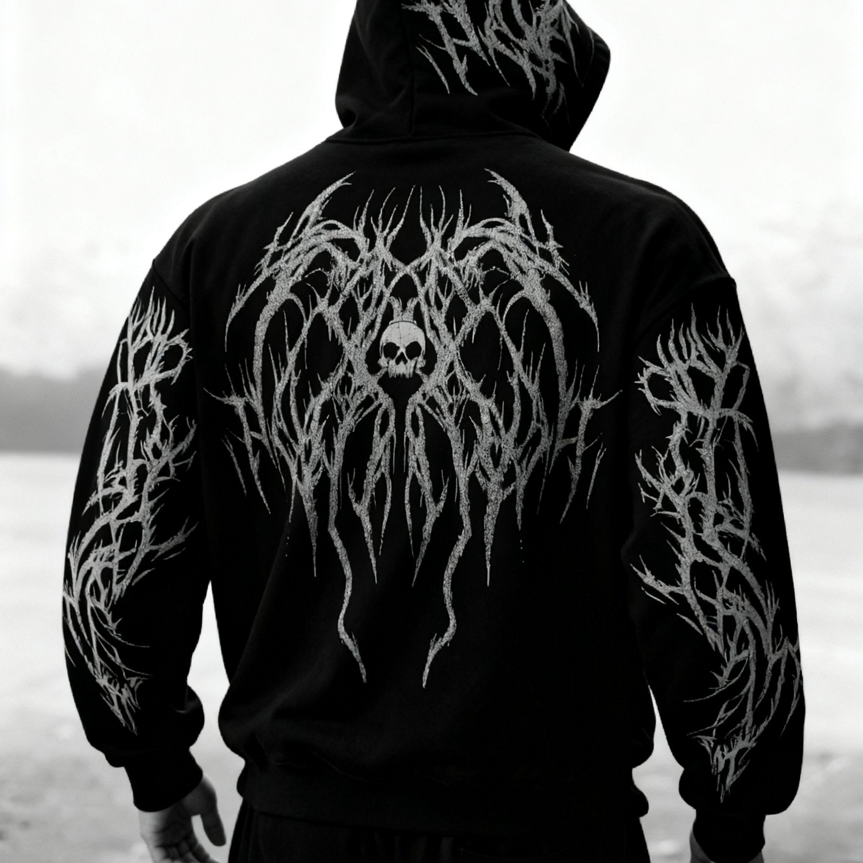 Men's Gothic Skull Print Zip Hoodie - Loose Fit with Pockets