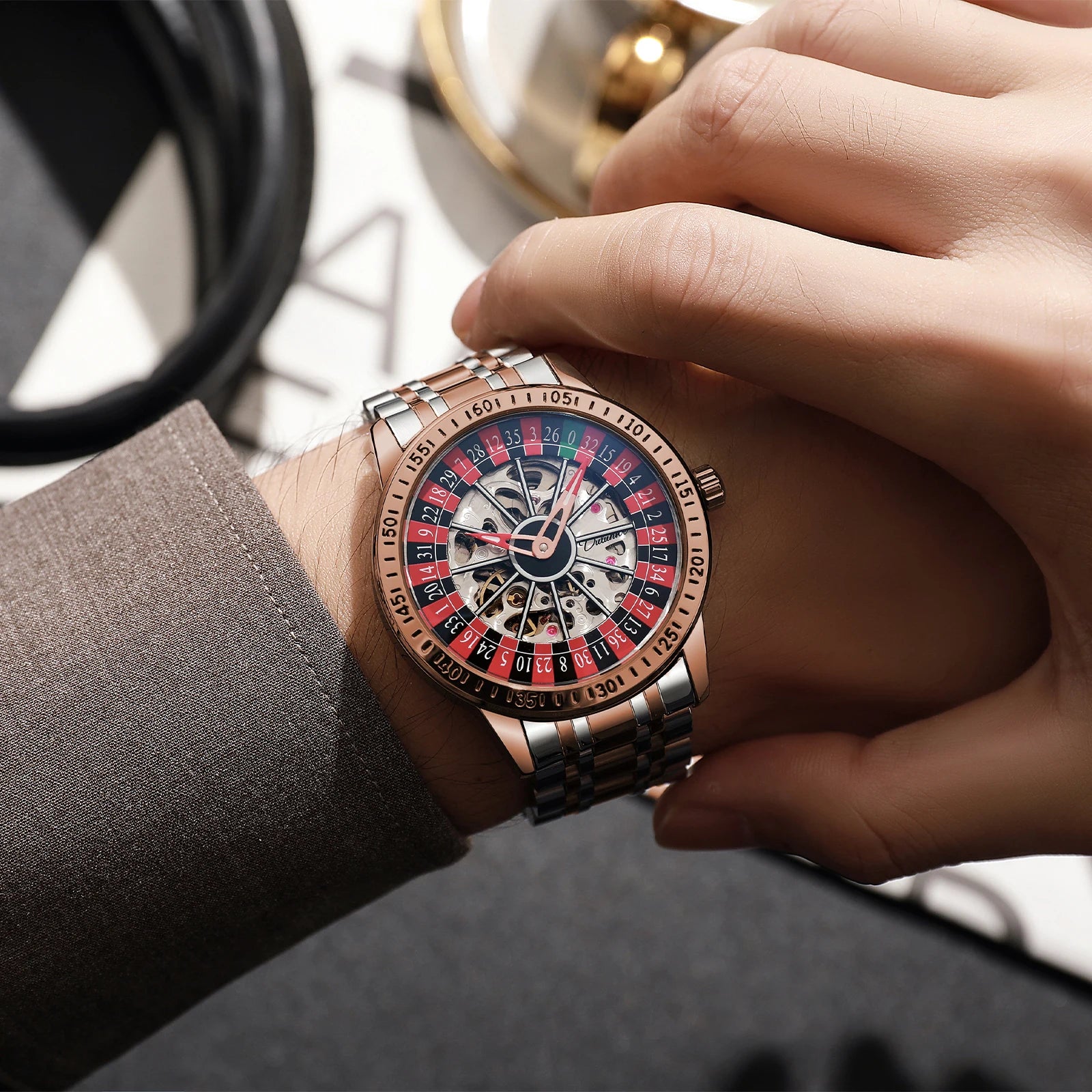 The DULUNWE watch is perfect for those who appreciate fine mechanical watches with a playful twist. The spinning roulette dial adds excitement to every glance at the time, while the automatic movement showcases traditional watchmaking excellence. A must-have for anyone who loves unique timepieces!