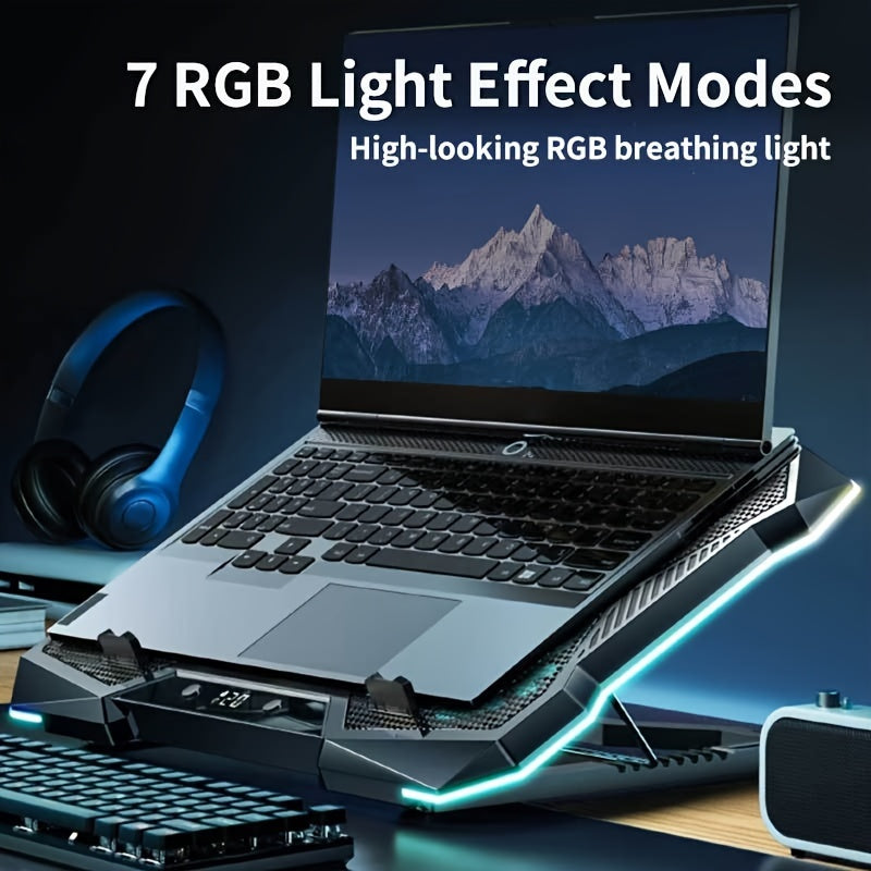 Keep your laptop cool during intense gaming with this Gaming Laptop Cooling Pad! 🌀 Featuring 10 powerful cooling fans, RGB lighting with 7 modes, 8 height adjustments, and compatibility with 12-18 inch laptops, this cooler stand is perfect for gaming and desktop use.
