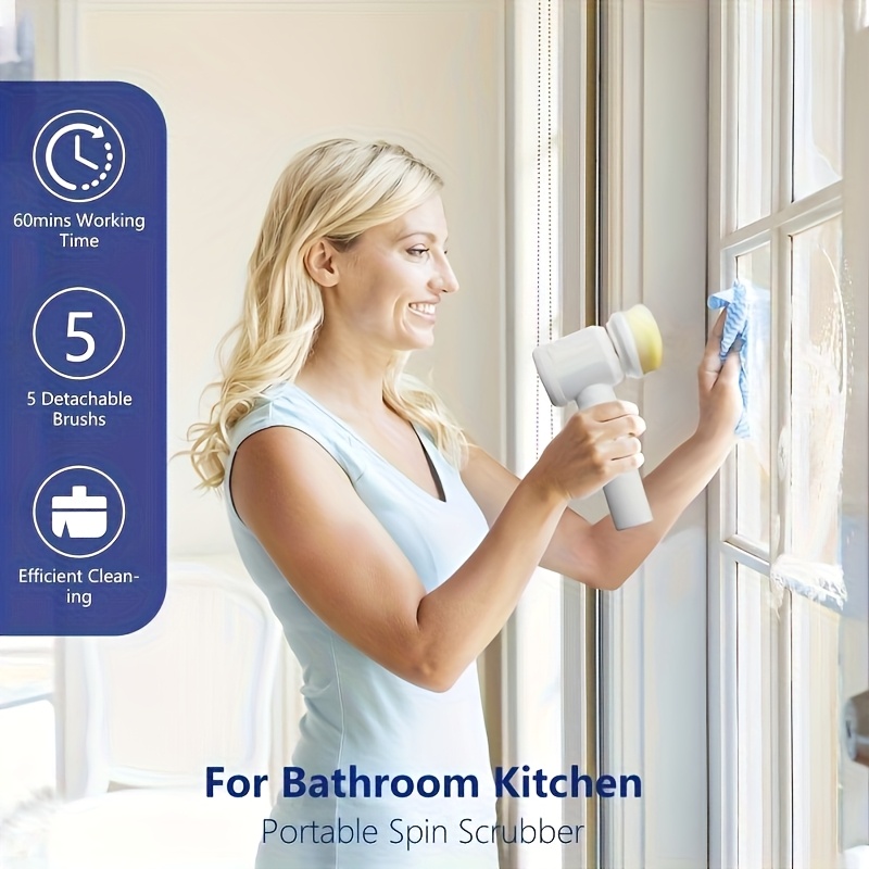 Electric Rotating Cleaning Brush – Cordless with 5 Replaceable Heads