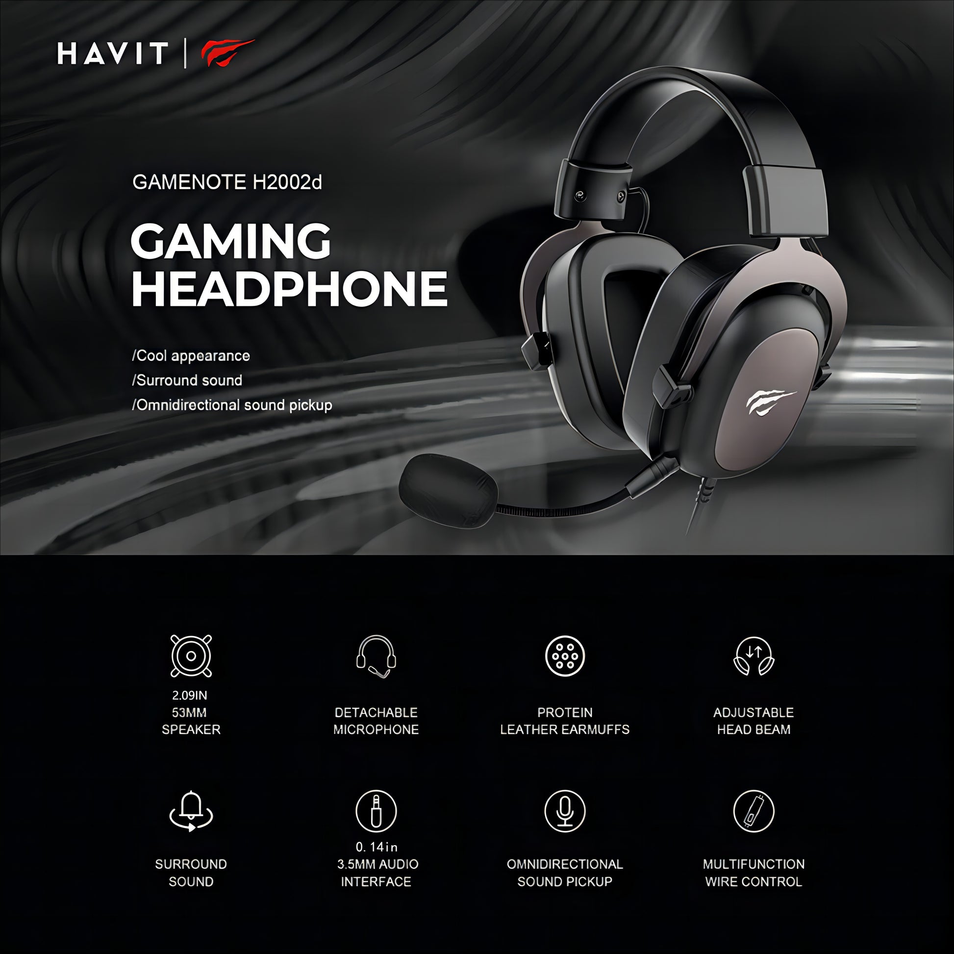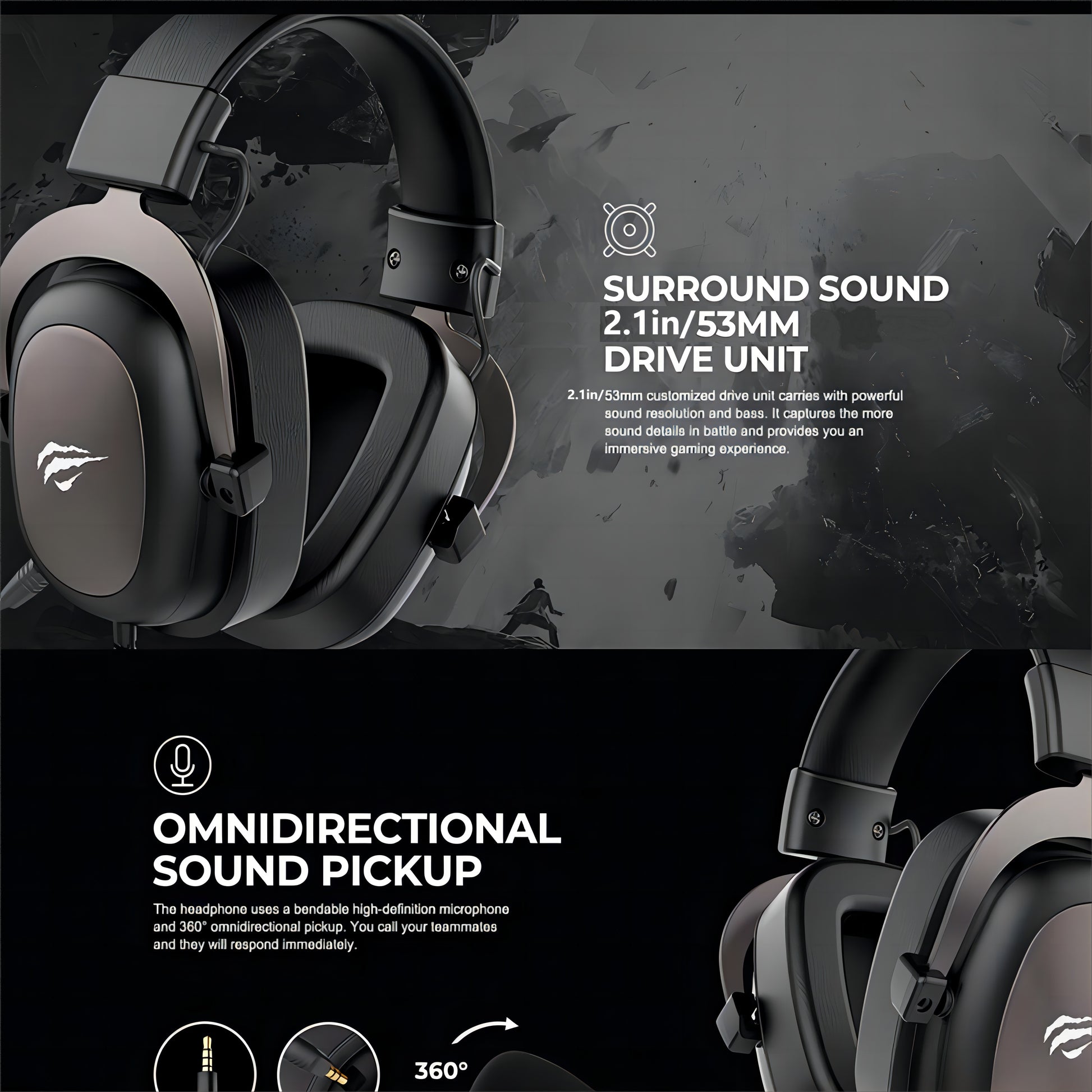 Immerse yourself in gaming with the HAVIT Gaming Headset! 🎧 Featuring protein faux leather earmuffs, detachable microphone, adjustable head beam, surround sound, and multifunction wire control, this comfortable headset enhances your gaming experience.