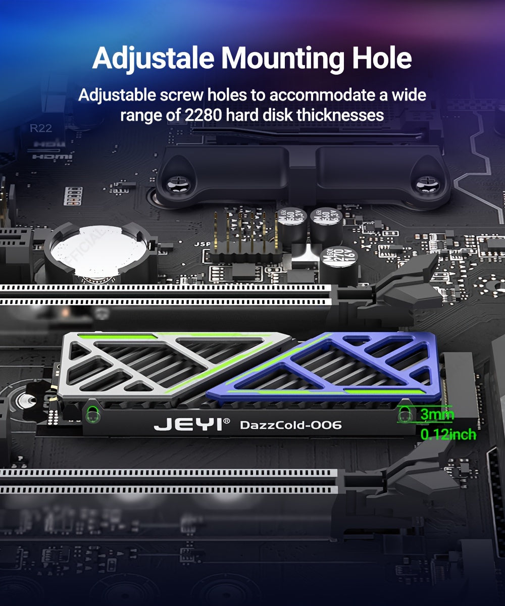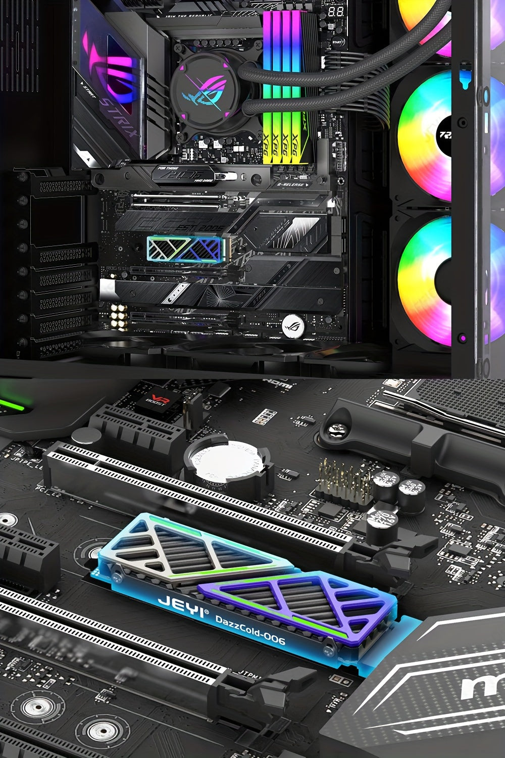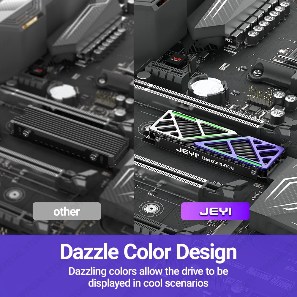 Keep your SSD cool with the JEYI Dazzcold M.2 SSD Heatsink! 🧊 Featuring magnesium aluminum alloy construction, efficient cooling design for 2280 NVME NGFF drives, and thermal silicone pad included, this PC cooler ensures optimal SSD performance.