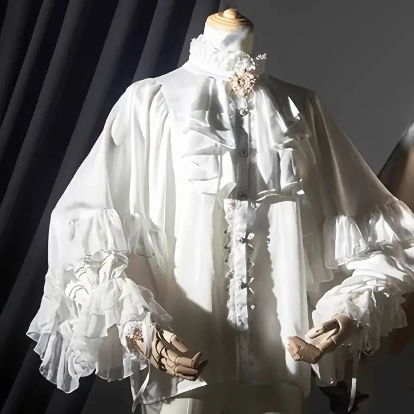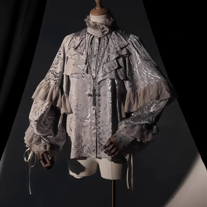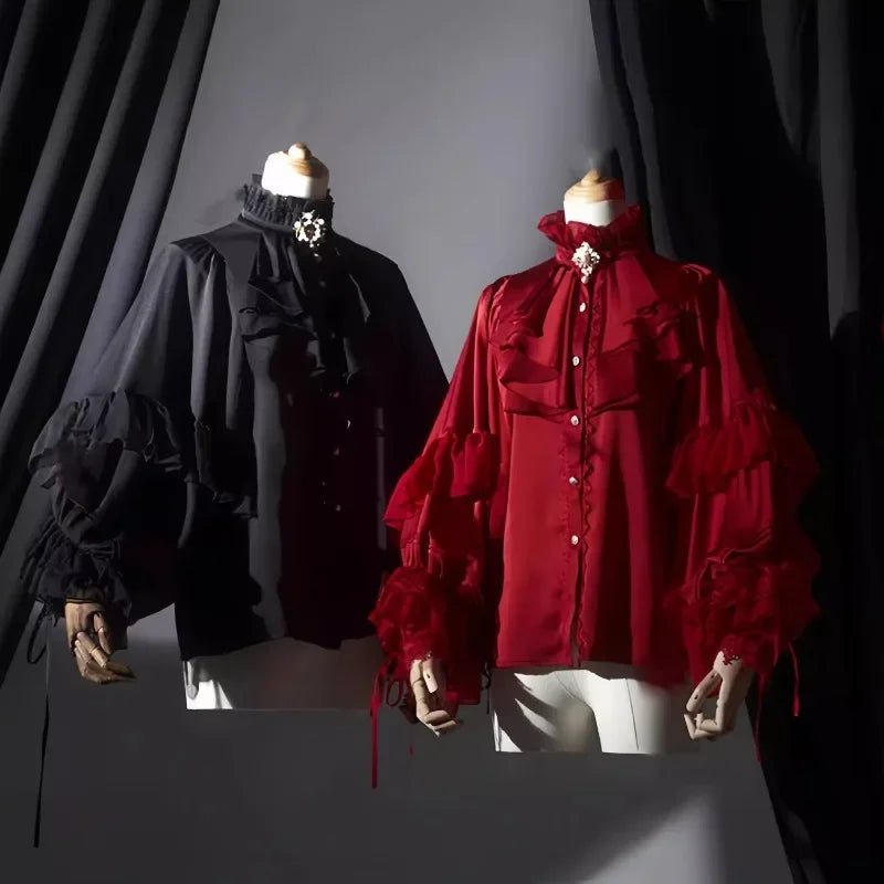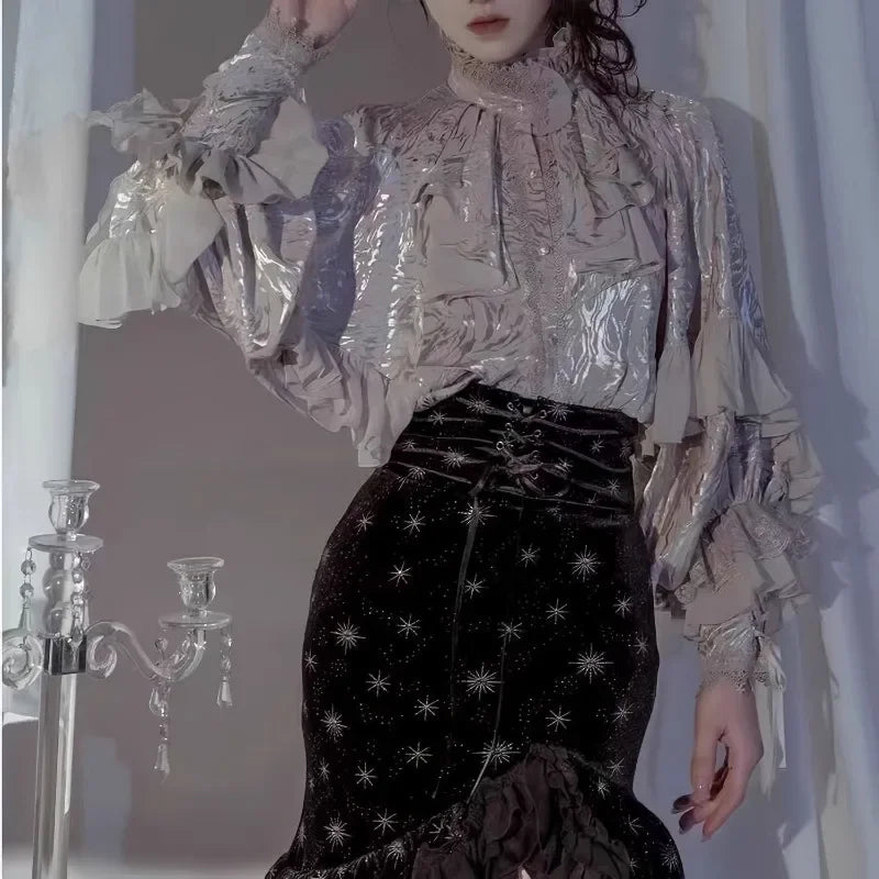 Lolita Y2k Gothic Dark Academia Clothes Loose Long Sleeve Shirt Women Y2k Stand Collar Ruffles Patchwork Blusas De Mujer
