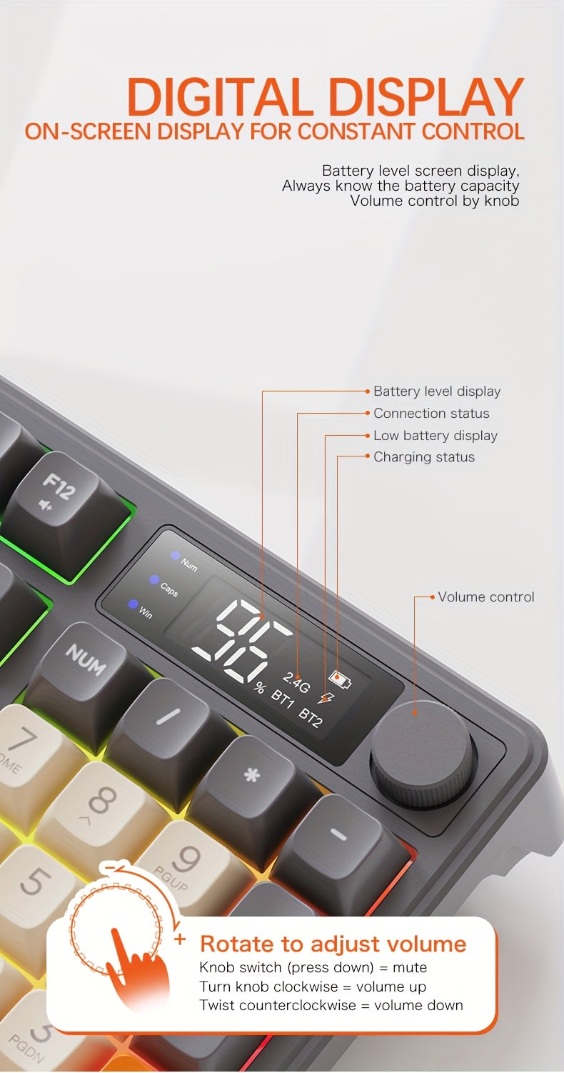 Upgrade your setup with the M96 Wireless Keyboard! ⌨️ Featuring dual mode connectivity (Bluetooth 5.0/2.4G), 96-key ergonomic design with RGB backlit, and USB-C rechargeable battery, this versatile keyboard is perfect for gaming and office use.