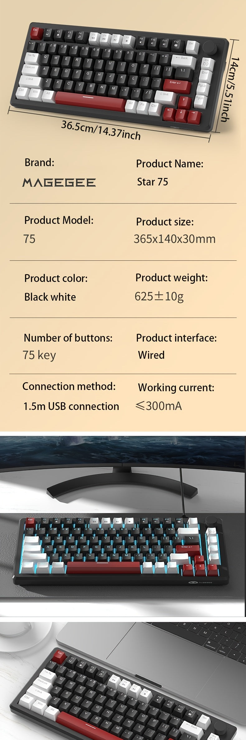 Game in style with the MAGEGEE Compact 75% Mechanical Gaming Keyboard! ⌨️ Featuring ice blue backlit, yellow switches, ergonomic EVA foam design, knob control, and NKRO technology, this compact keyboard comes with red & white keycaps plus 16 DIY options.