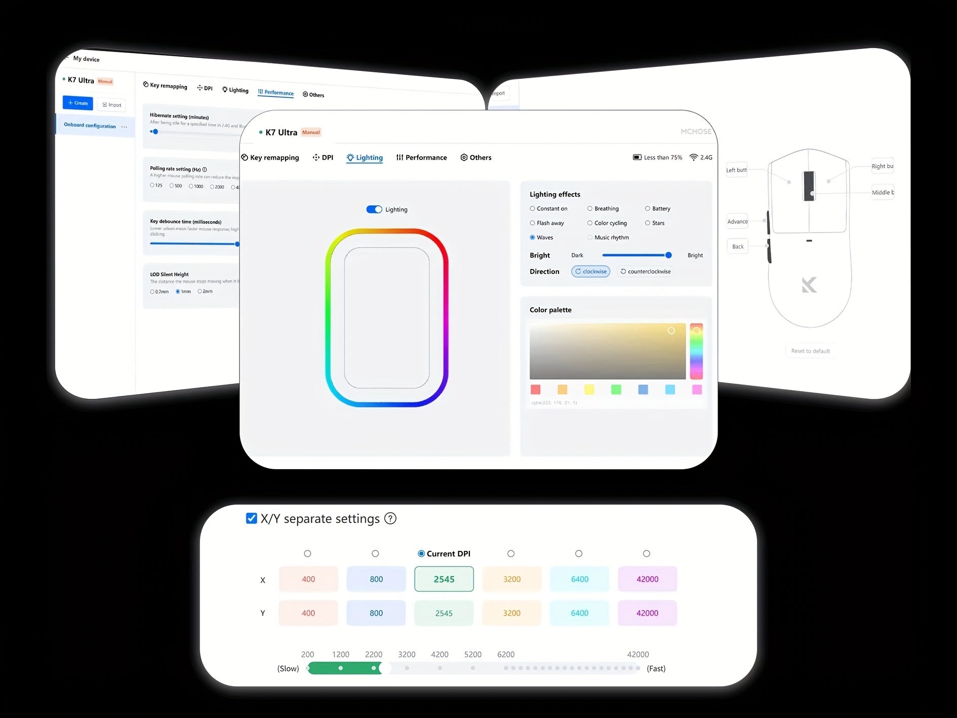 Ultimate gaming precision with MCHOSE K7 Ultra Wireless Gaming Mouse! 🖱️ Featuring magnetic charging dock, 8K polling (8000Hz), 42000 DPI PAW3950 sensor, RGB lighting, wireless/2.4G/wired connectivity, ultra-lightweight 59g design, Realtek chipset, and perfect for PC gaming with driver compatibility.