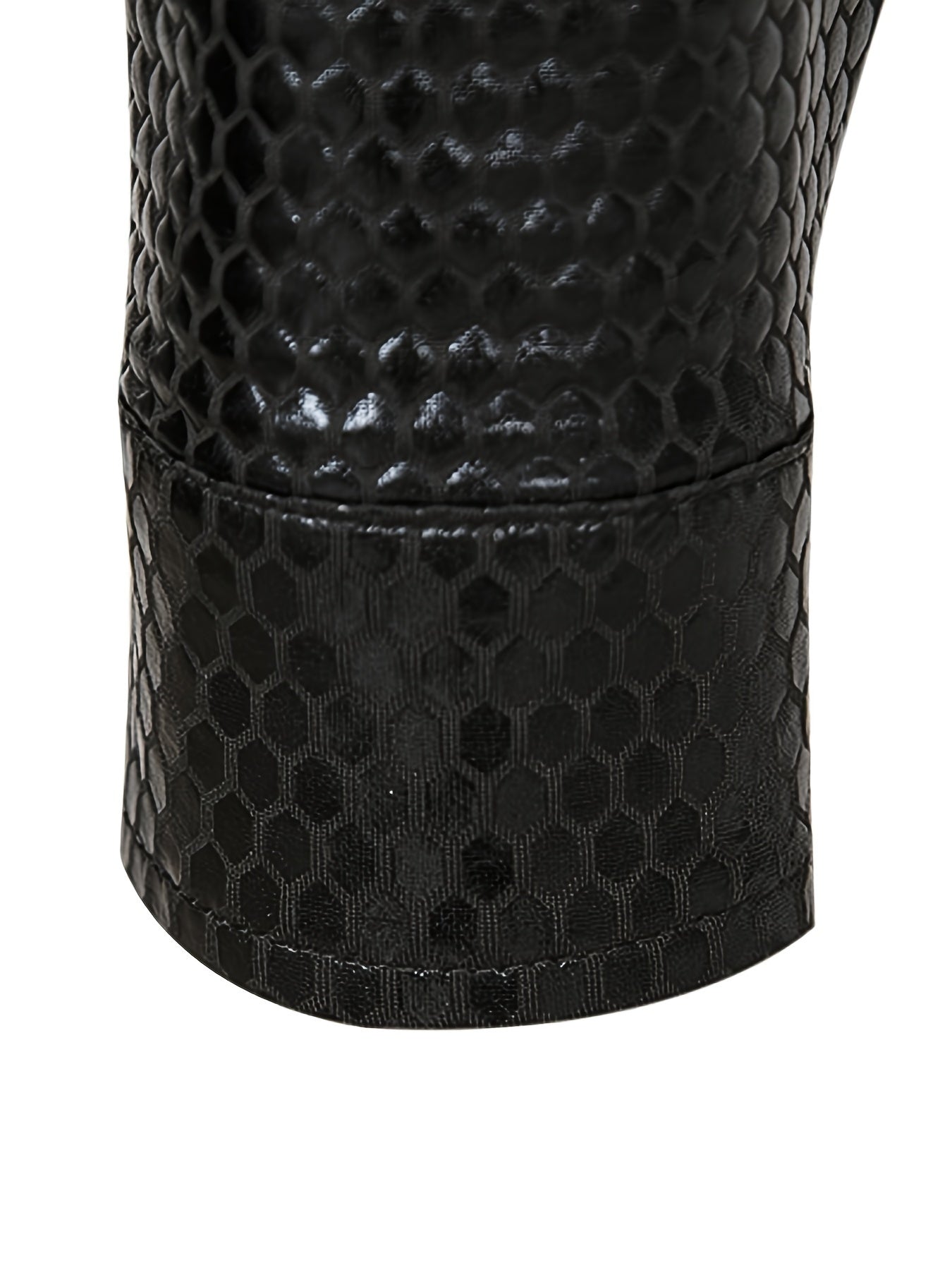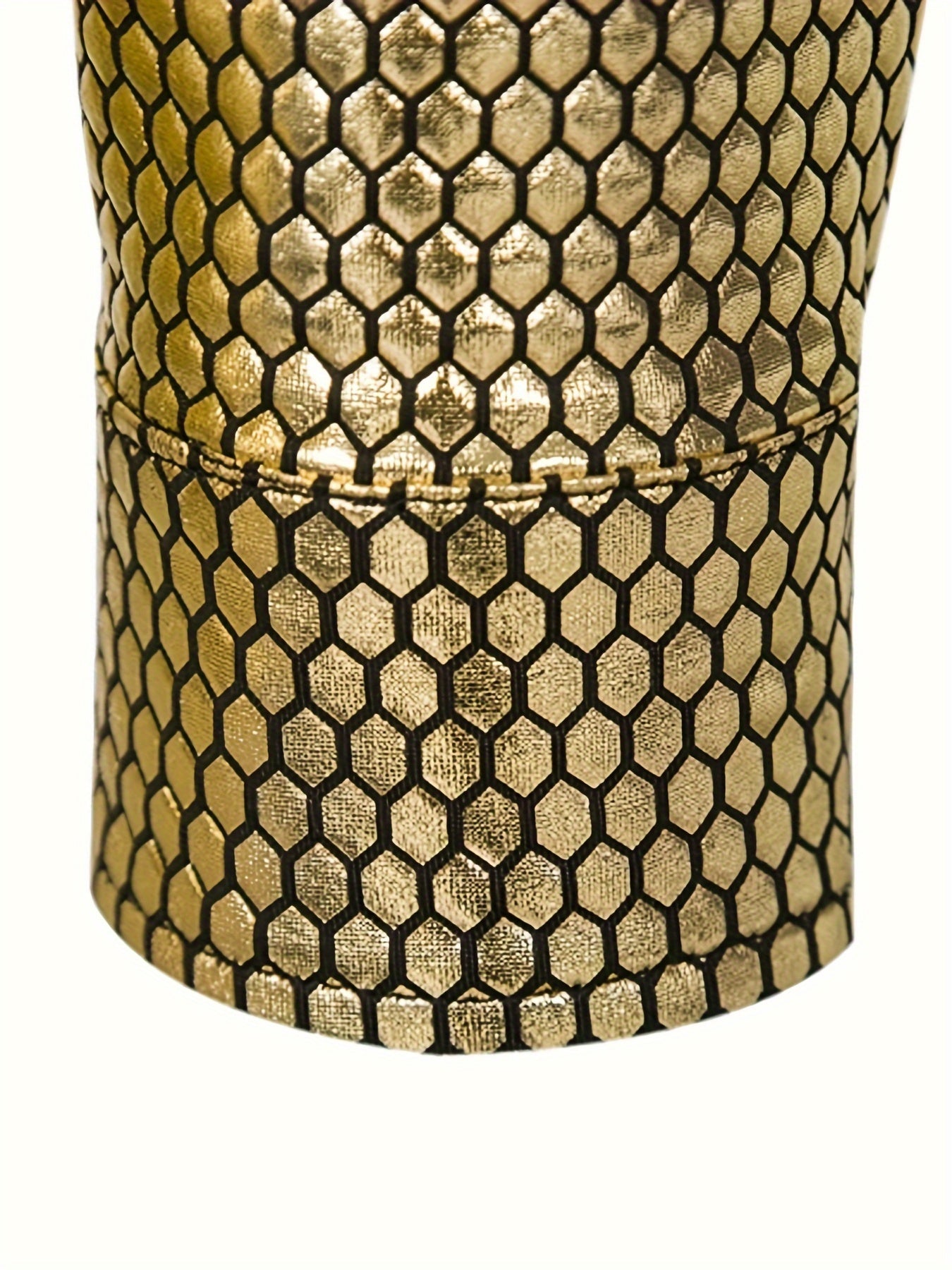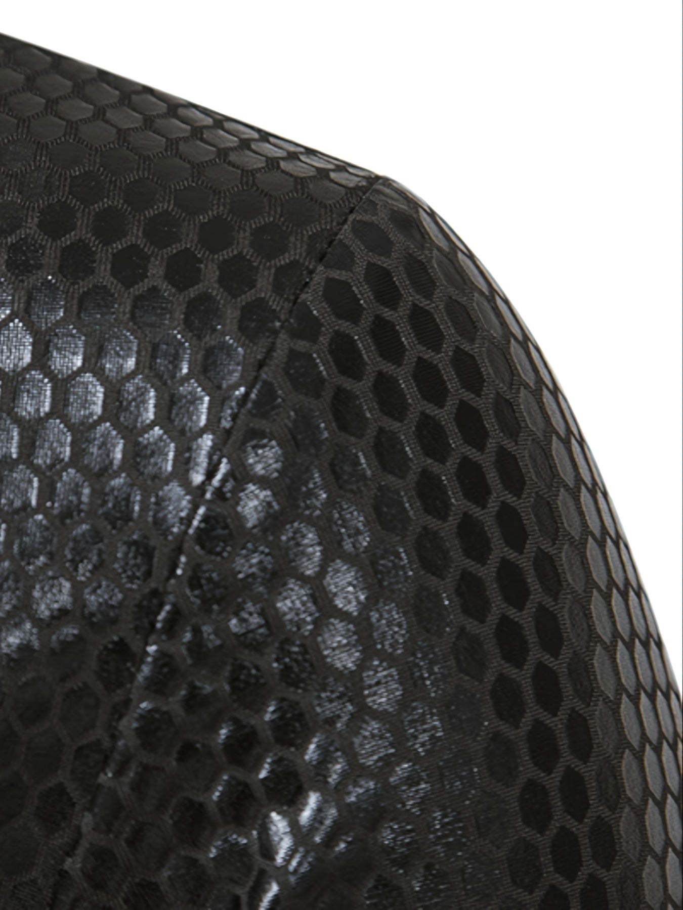 Retro party style with Men's 70s Disco Outfit! ✨ Featuring diamond foil print, long sleeve button-up shirt, skinny formfitting design, medium stretch fabric with 95% polyester and 5% spandex for festivals and retro fashion.