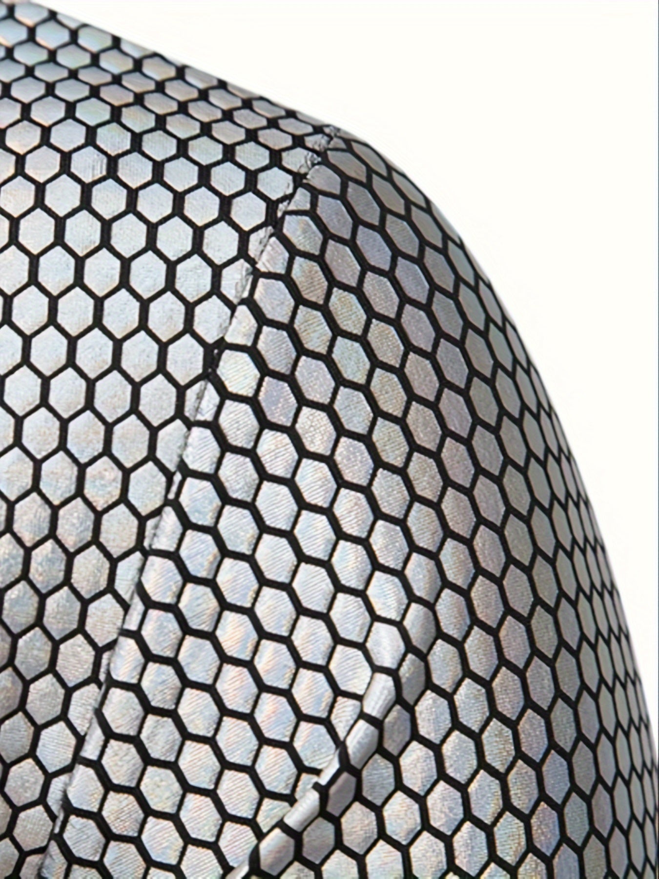 Men's 70s Disco Outfit - Diamond Foil Print Button-Up Shirt