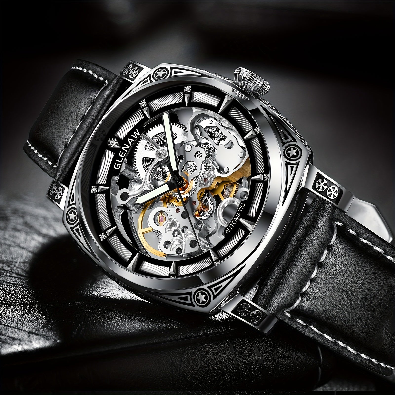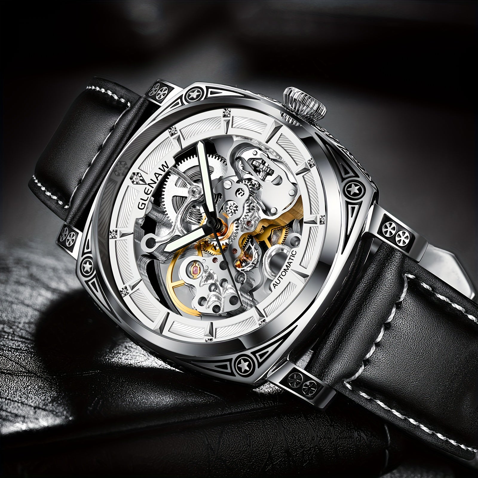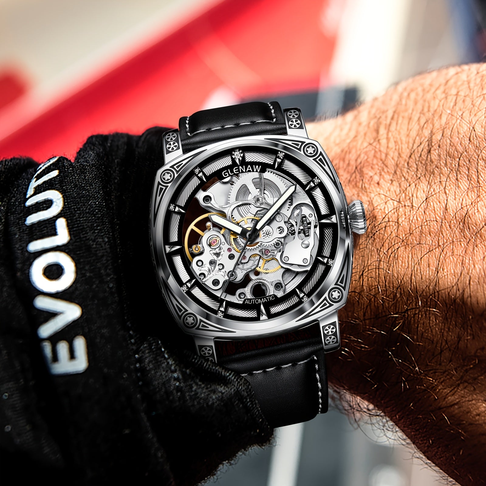 GLENAW Men's Hollow Automatic Watch - Rhinestone Dial Mechanical