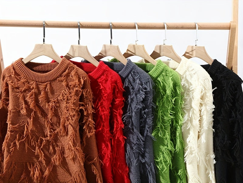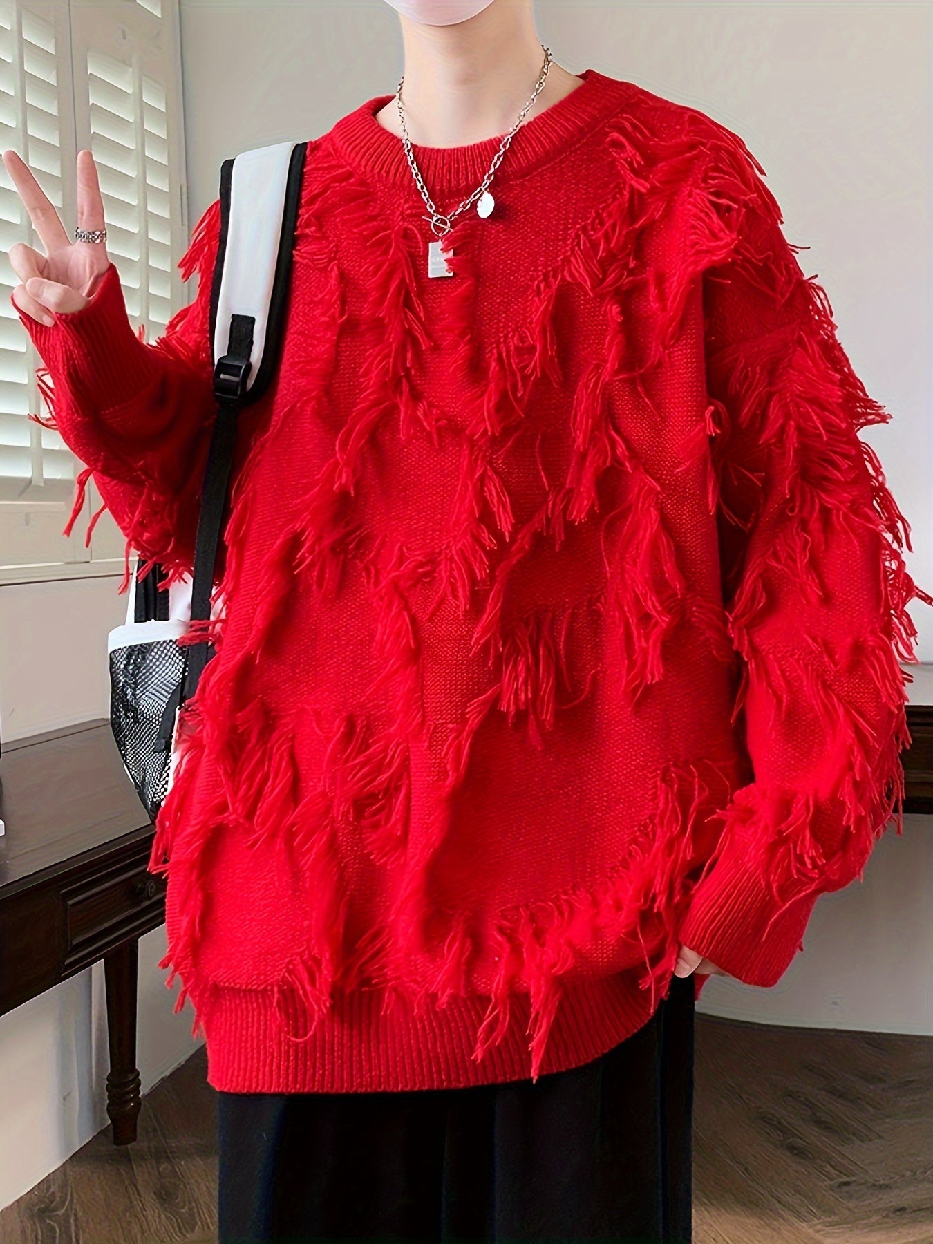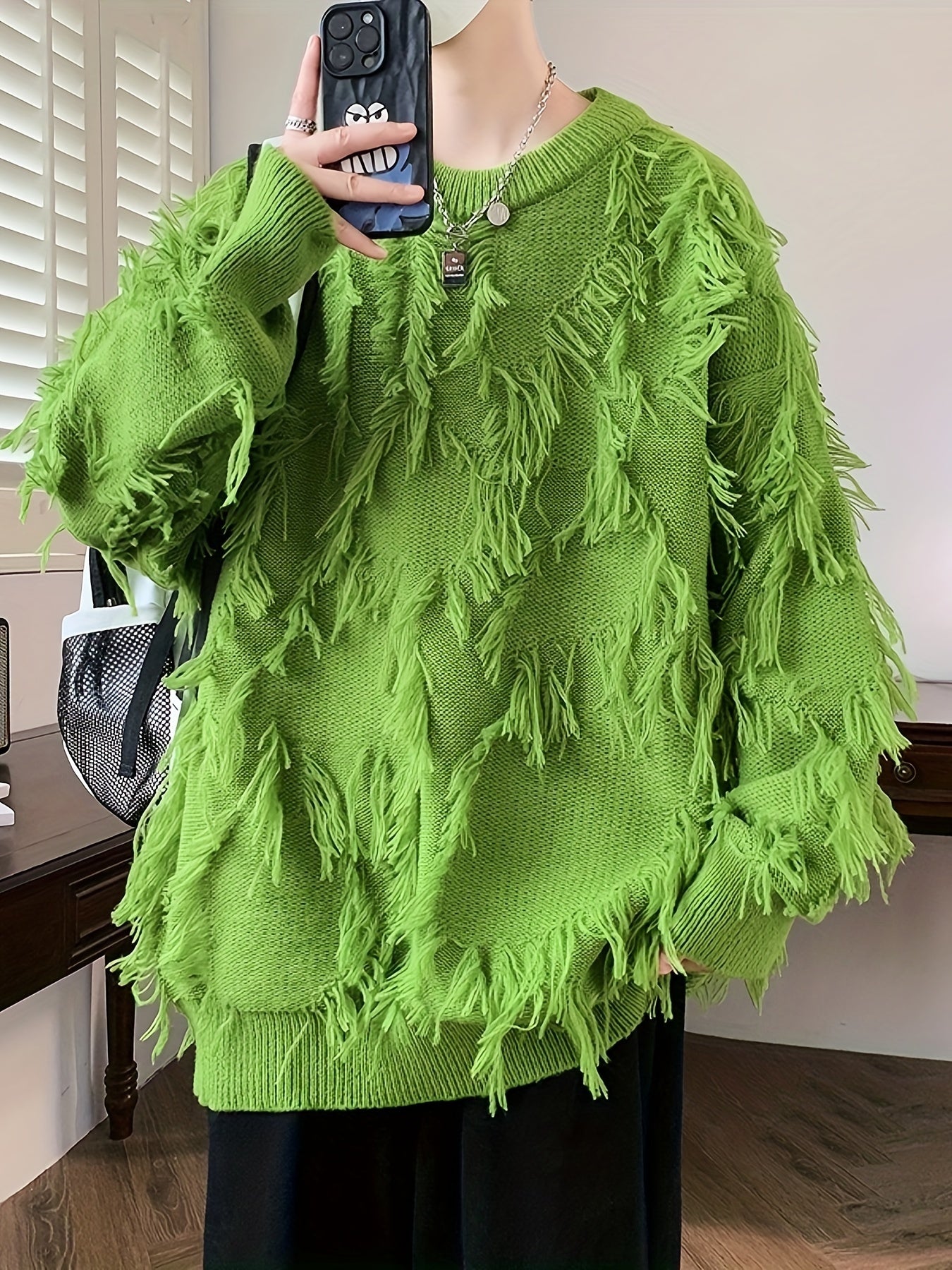 Men's Casual Fringed Pullover Sweater - High Stretch Knit