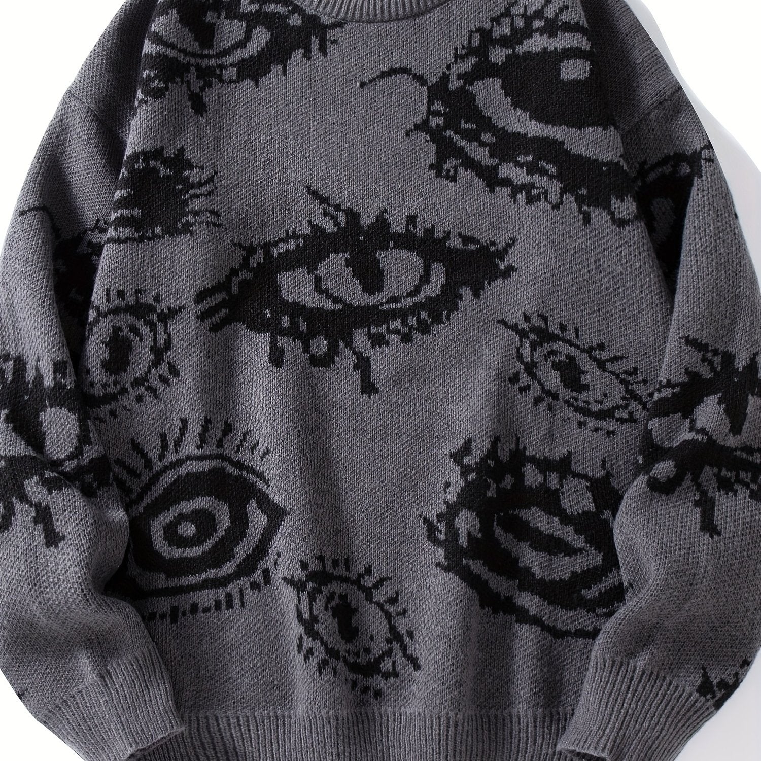 Men's Casual Streetwear Geometric Eye Pattern Knit Sweater