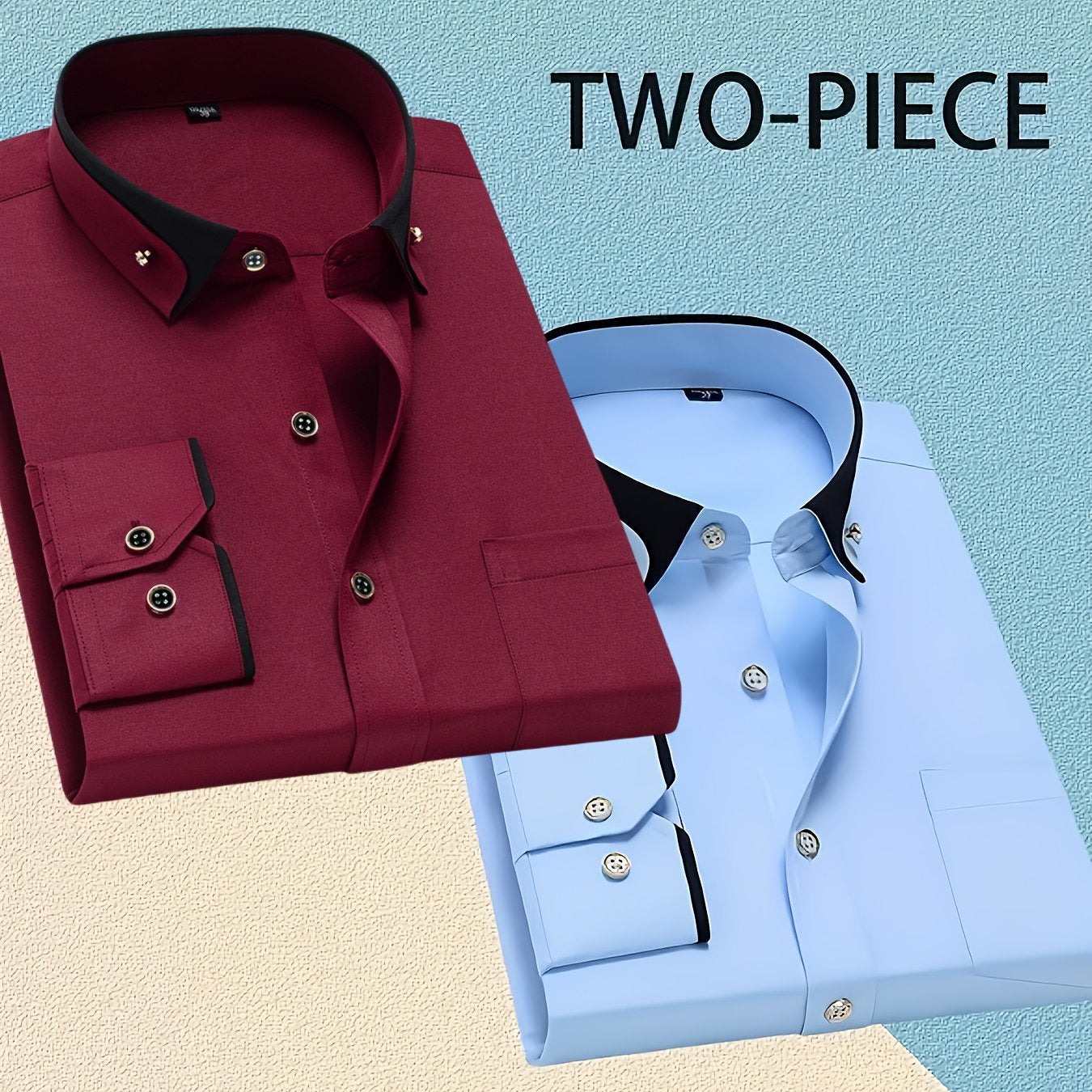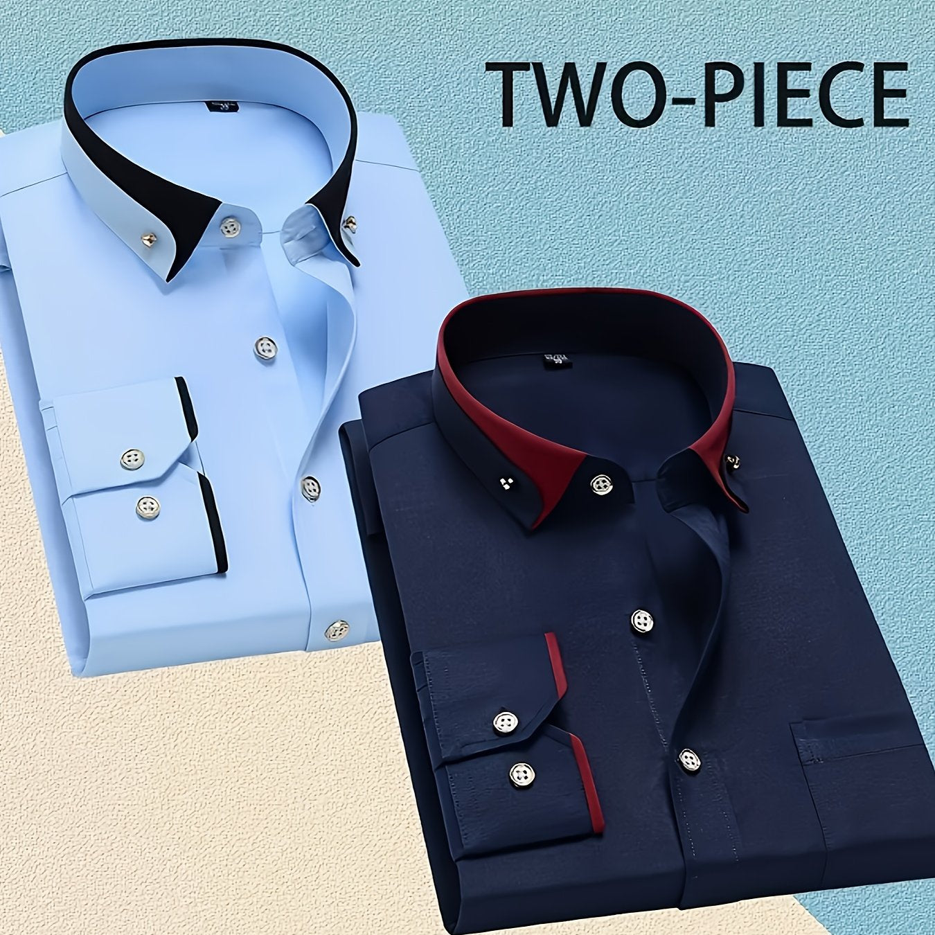 1+1 Men's Double Lapel Long Sleeve Shirt - Fashion Business Casual