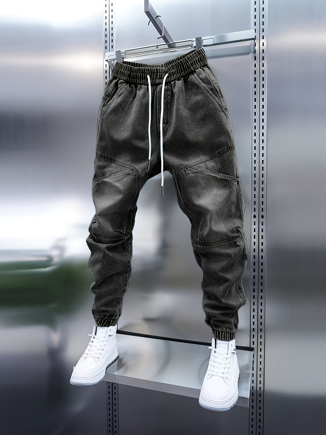 Men'S Four-Season Patchwork Cuffed Casual Jeans in Light Blue.
