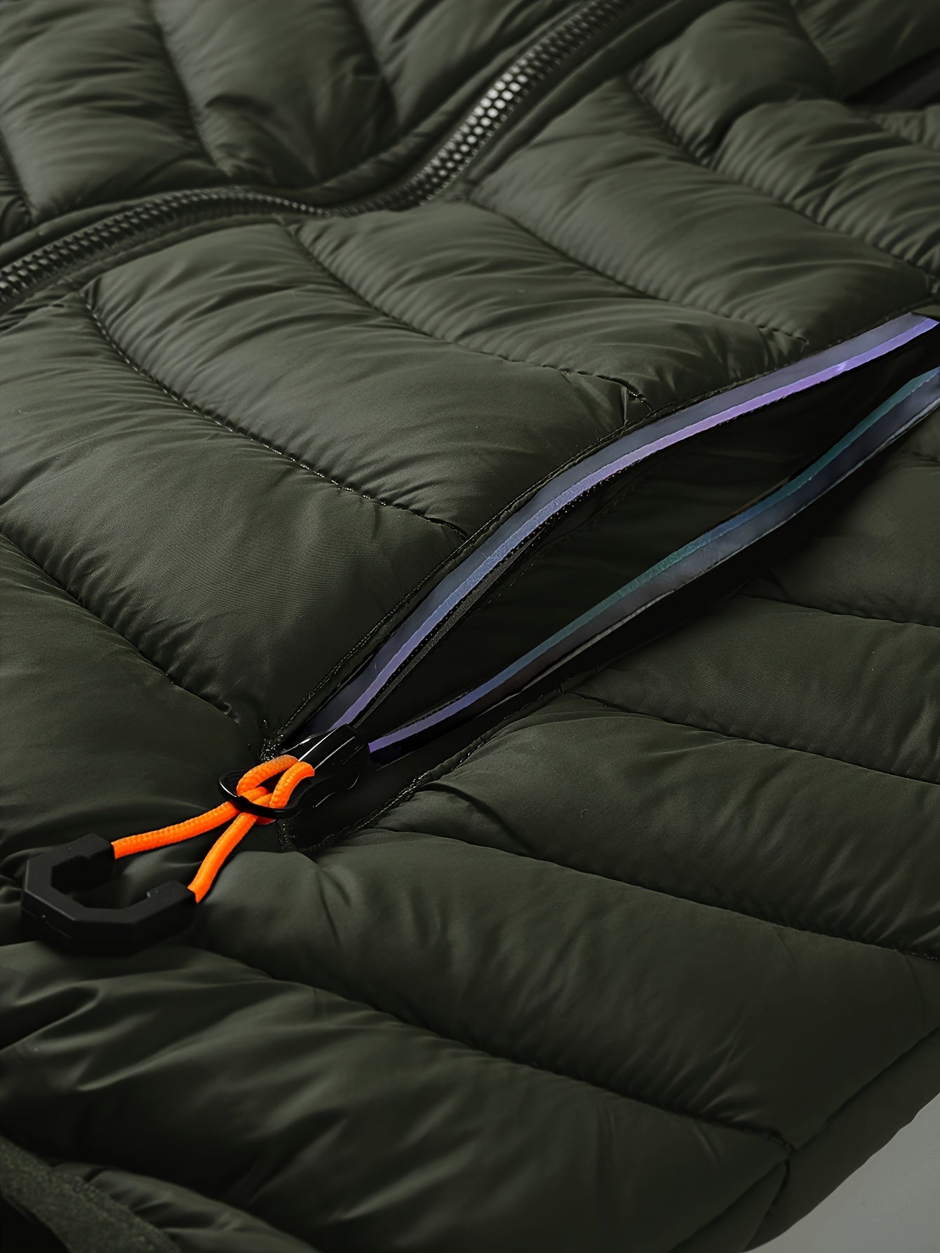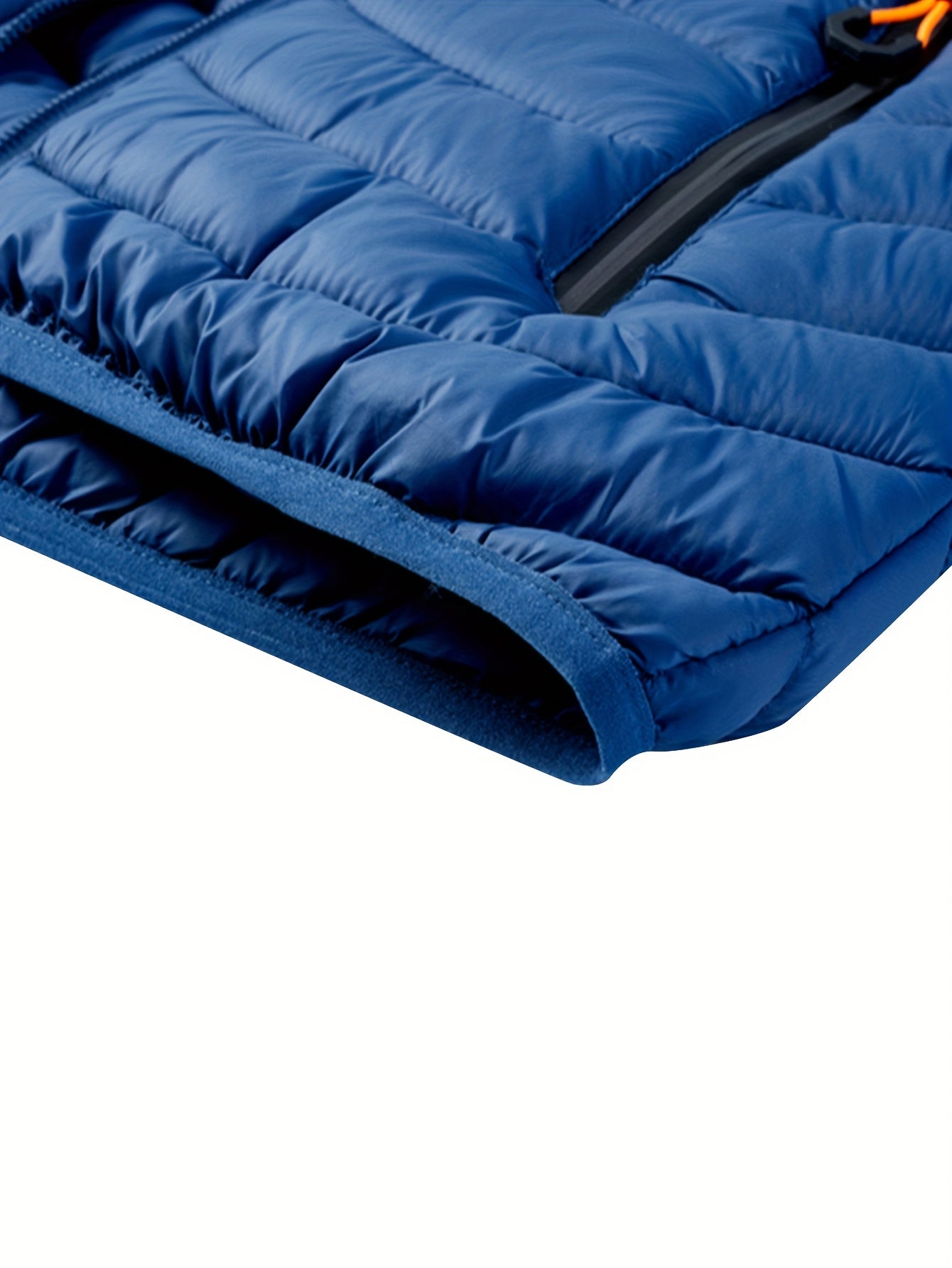 Casual comfort with Men's Lightweight Stand Collar Jacket! 🧥 Featuring orange zipper detail, stand collar design, multiple pockets, 100% nylon construction, polyester filling, and regular fit for fall and winter.