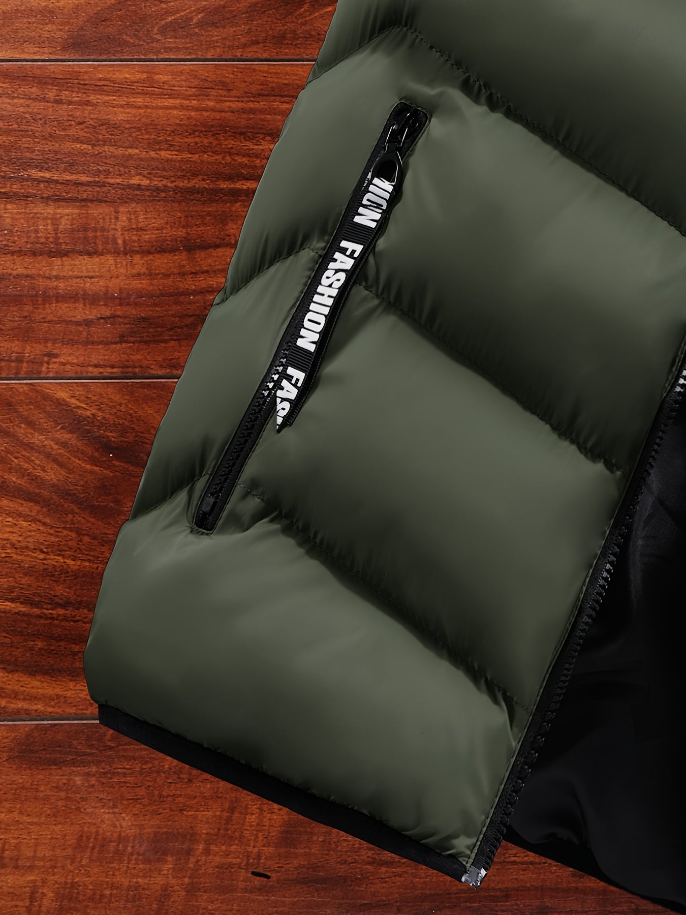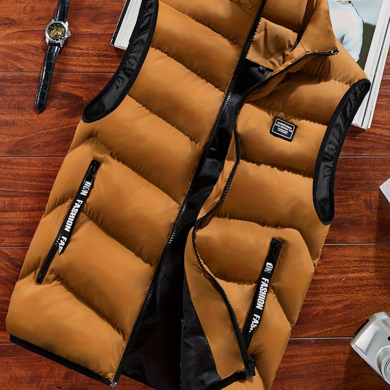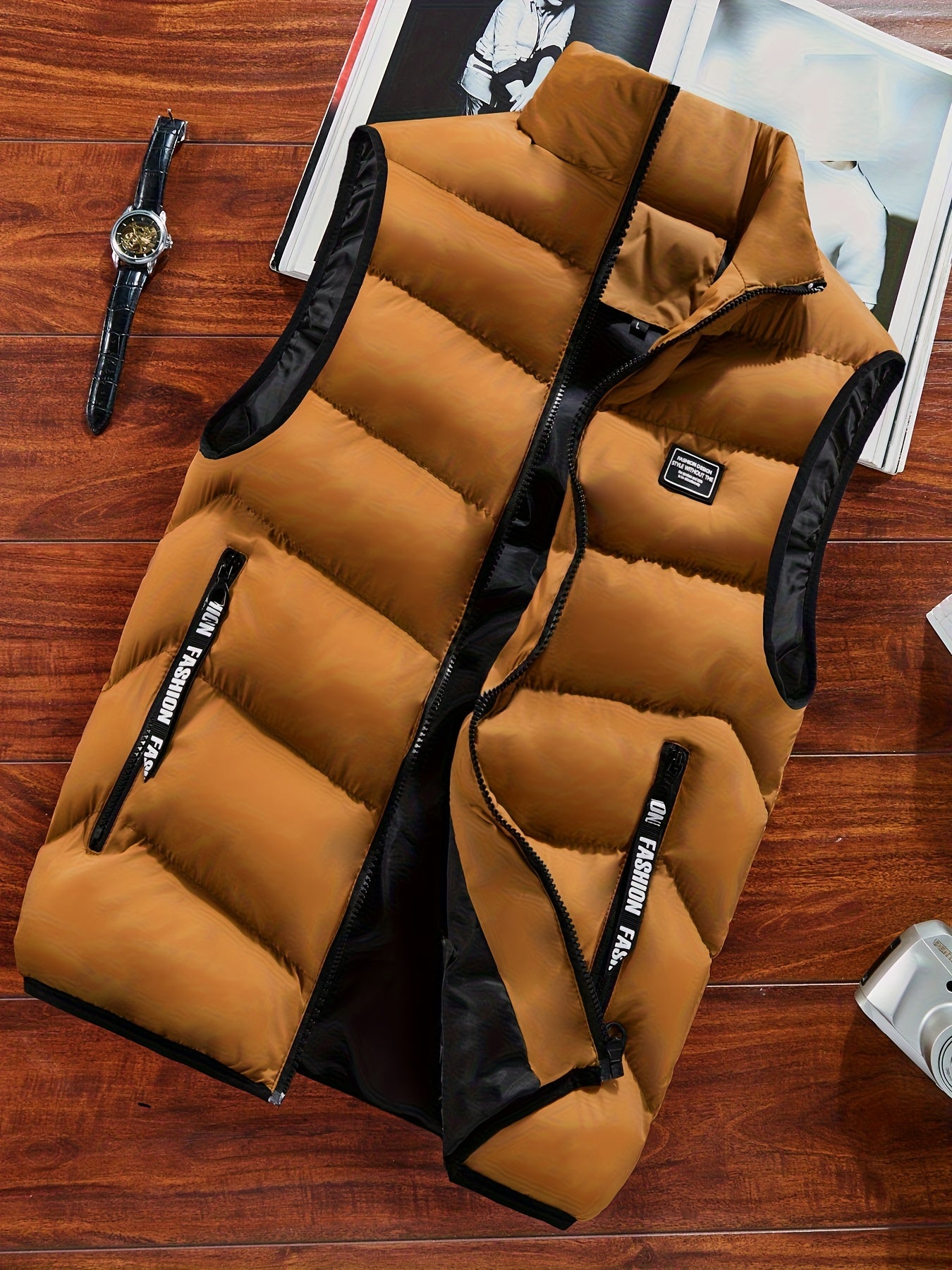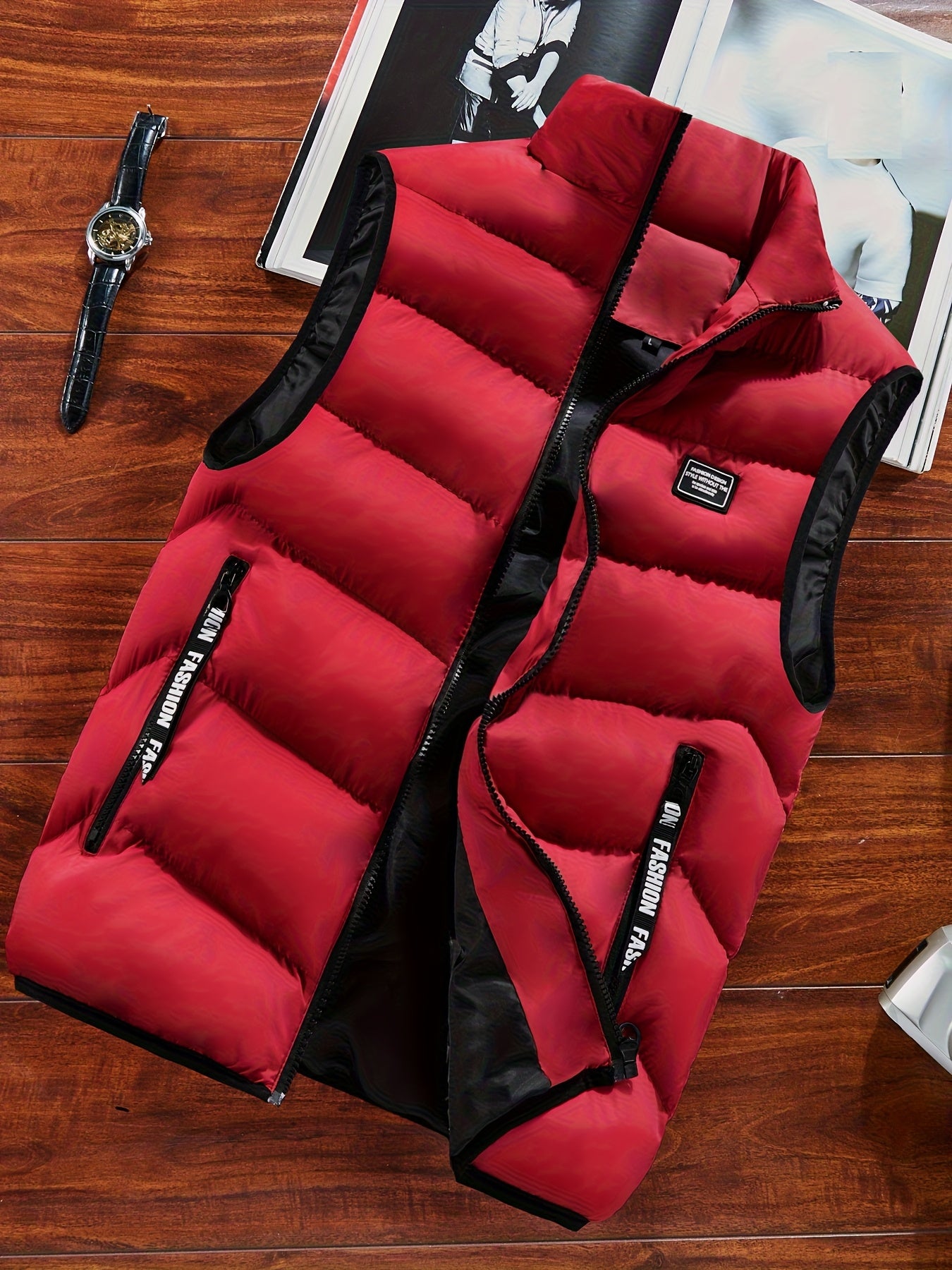 Layering essential with Men's Sleeveless Vest! 🦺 Featuring warm construction, zippered stand collar, 100% polyester with full lining and filler for autumn and winter cold resistance.