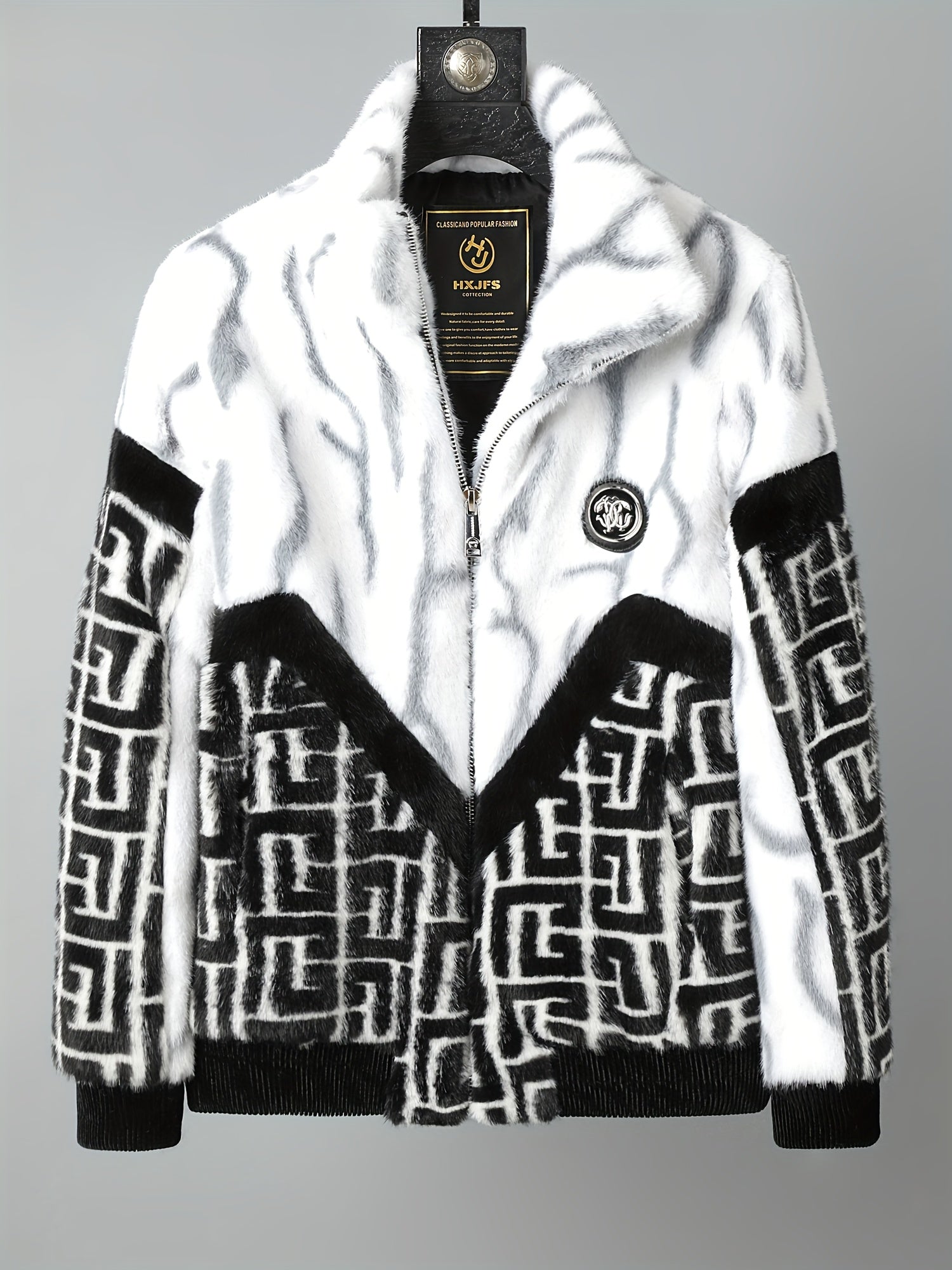 The NOIR COUTURE “VANTAGE” Jacket blends bold geometry with refined comfort. Crafted for modern men who value statement design, this piece features a striking contrast of soft fleece and signature monogram detailing. The elevated street silhouette delivers warmth, structure, and unmistakable presence — perfect for luxury casual styling.